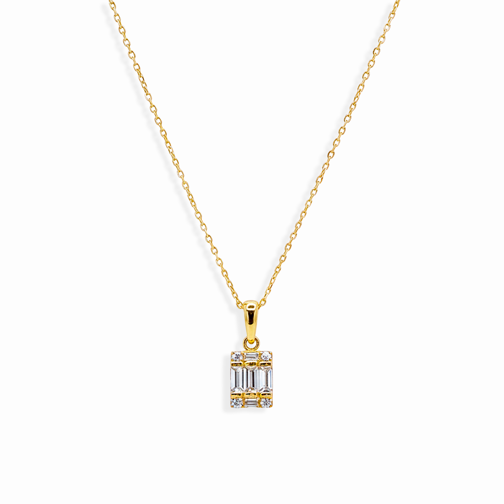 Collar con Circonias Baguette mas Extension Oro 10K. Largo: 45 cm