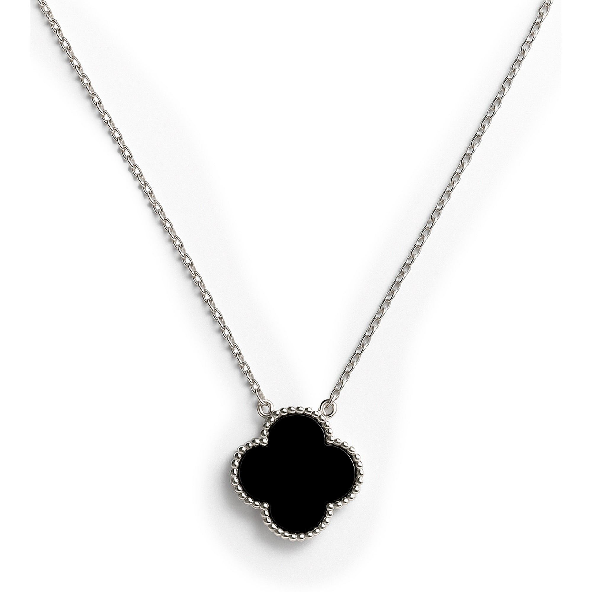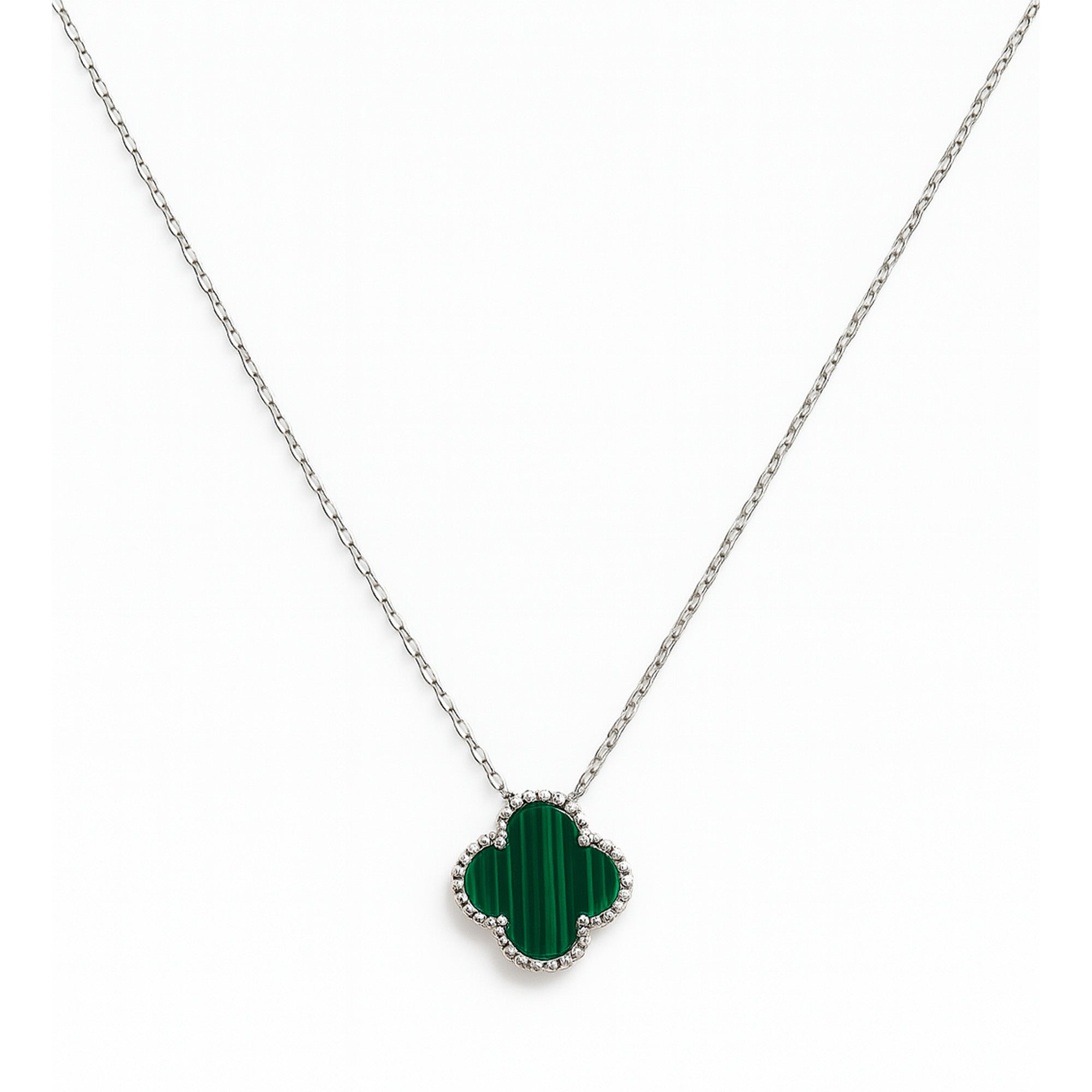 Collar Flor Inspirado Van C Piedras Naturales Plata .925 con Rodio mas Extensión Disponible en: Verde Malaquita y Onix