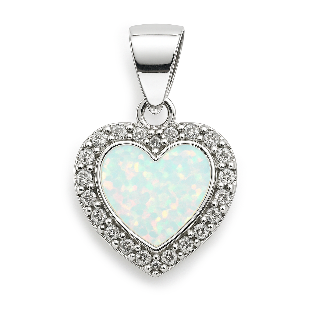 Dije Corazón con Ópalo y Micro Circonias de 1.5cm Plata .925 Disponible en colores: Azul, Blanco y Rosa