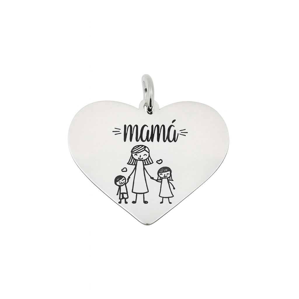 Dije Corazón Mamá con Hijos Plata .925