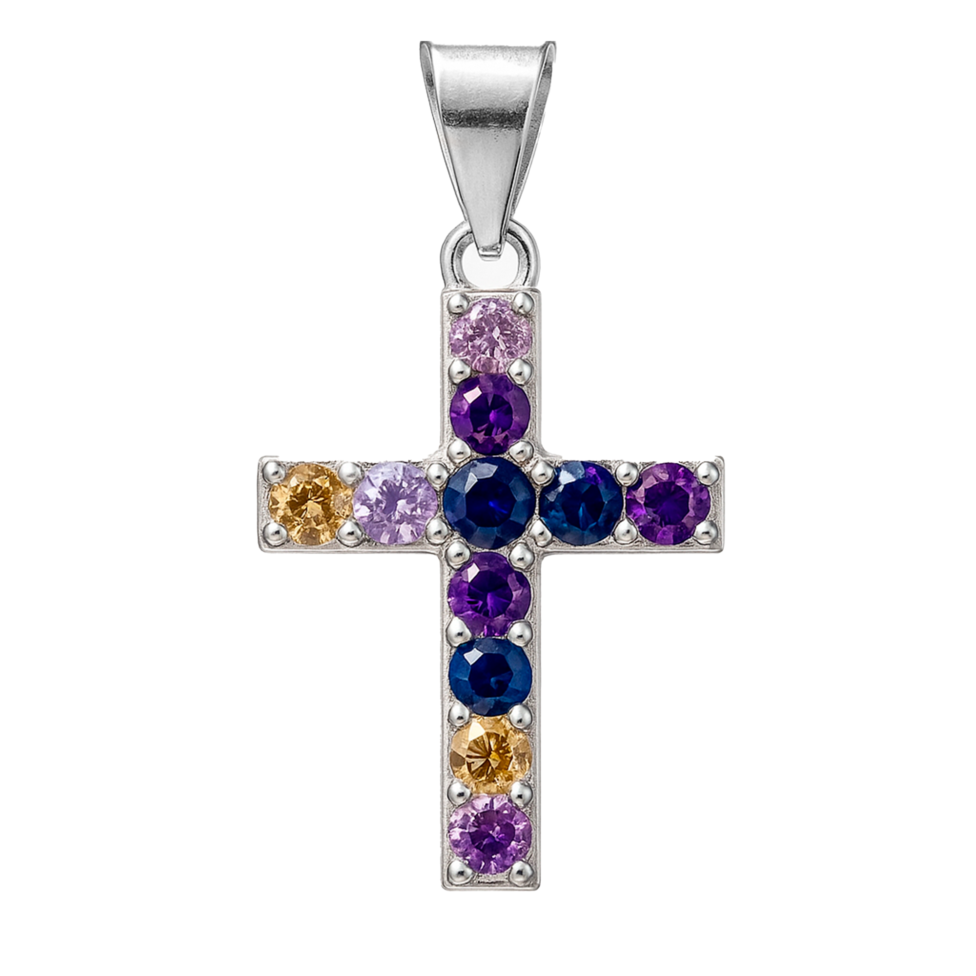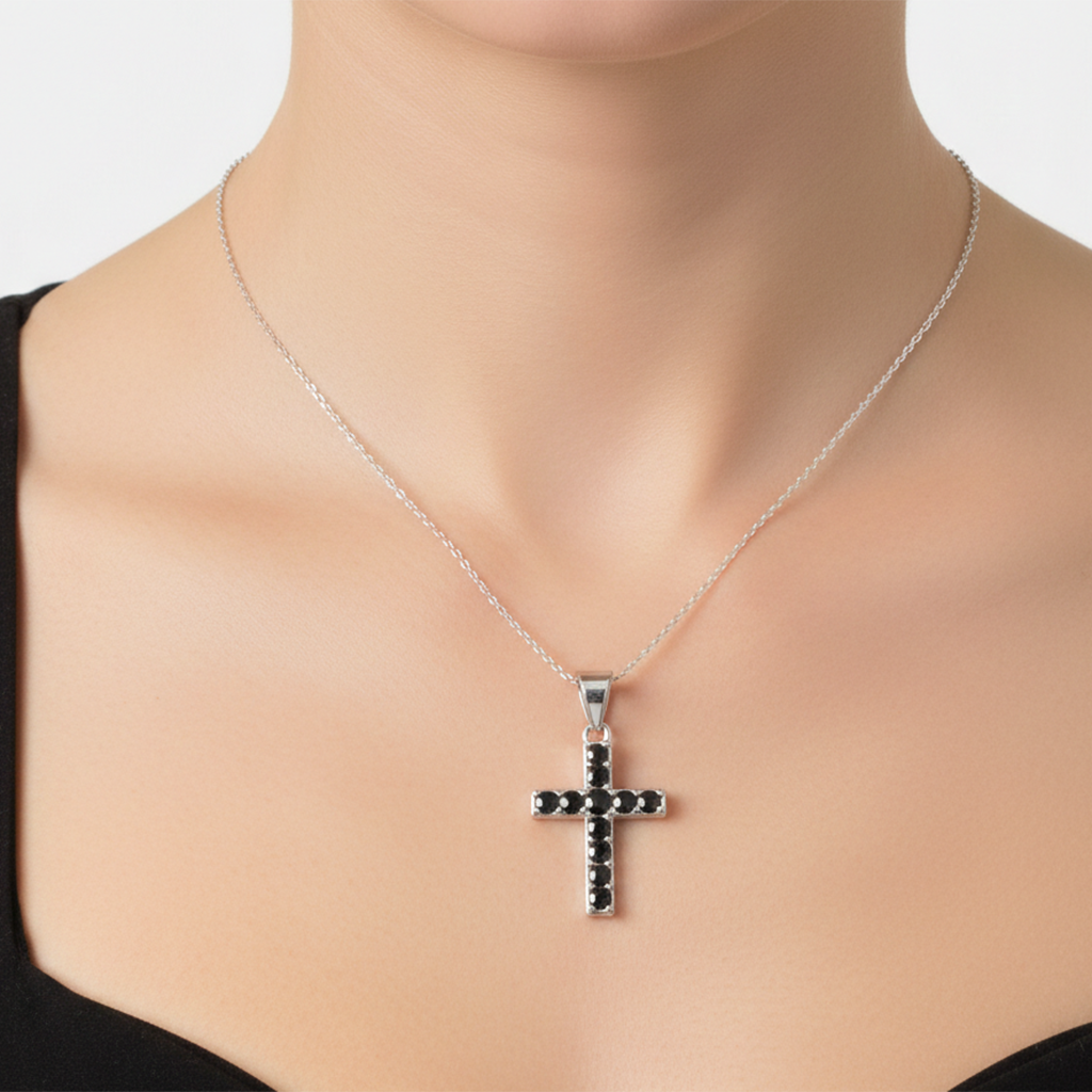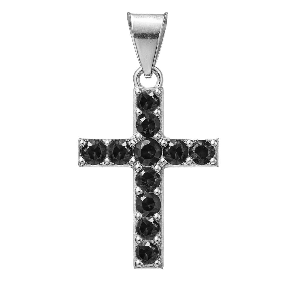 Dije Cruz Doble Vista con Circonias 2.4cm Plata .925. Disponible en: Negro con Blanco y Multicolor con Blanco