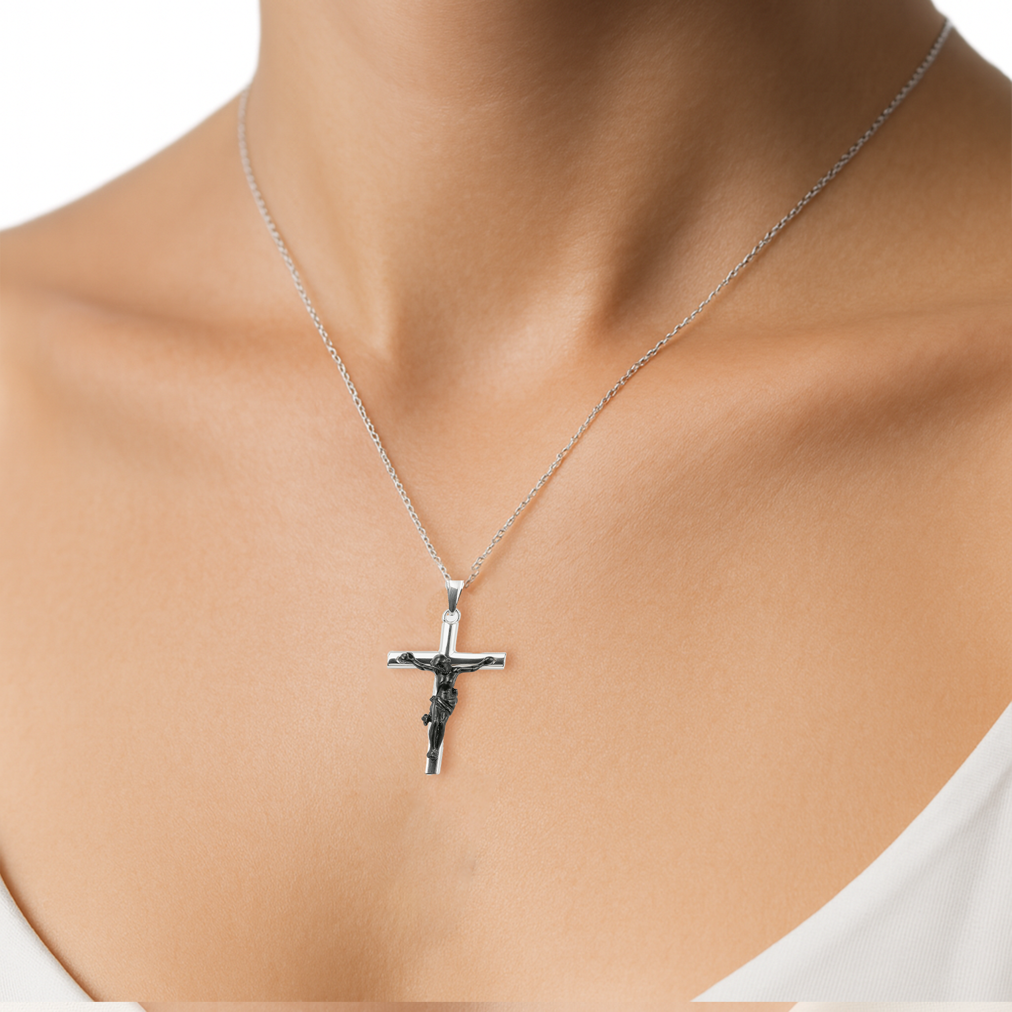 Dije Crucifijo Oxidado de 3.4cm Plata .925 Disponible en: Negro y Oxidado