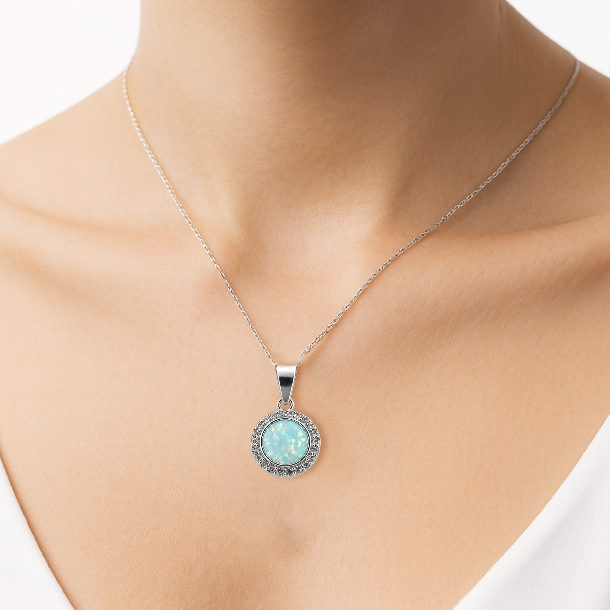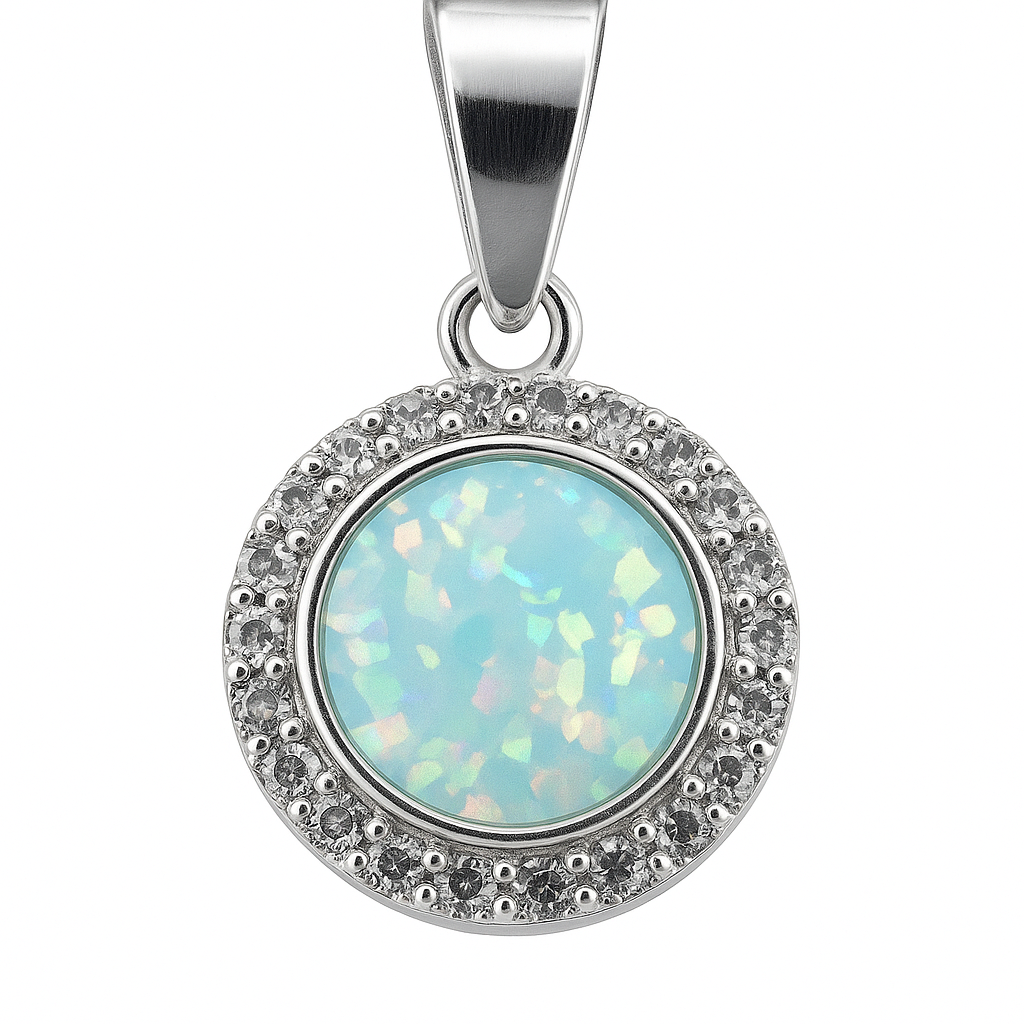 Dije Redondo de Ópalo con Micro Circonias Plata .925