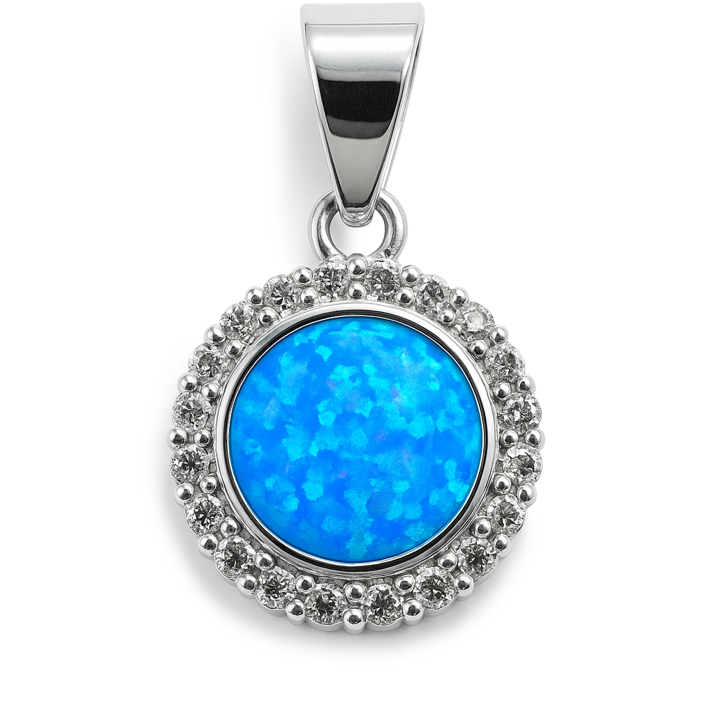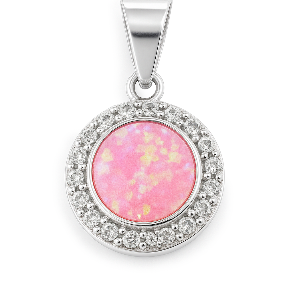 Dije Redondo de Ópalo con Micro Circonias de 1.5cm Plata .925 Disponible en: Azul, Blanco y RosaDescargar Imagen