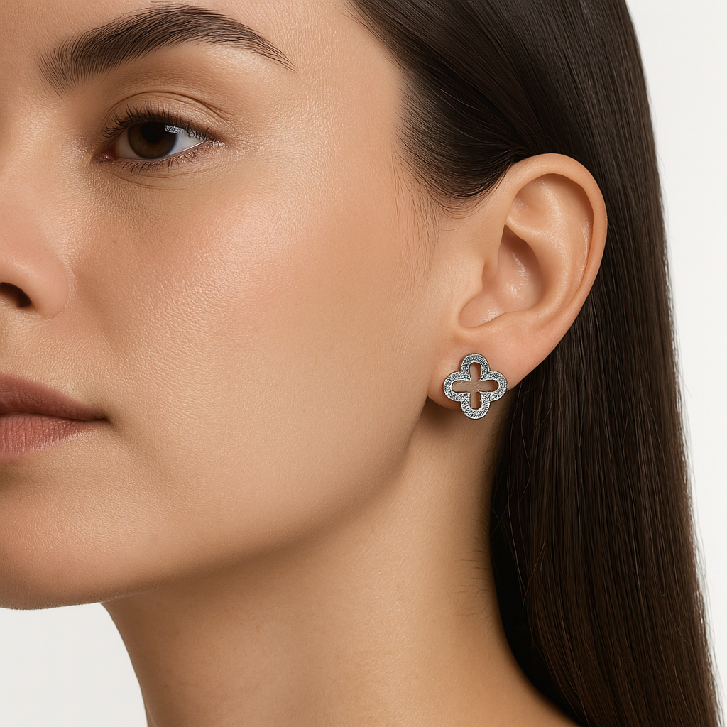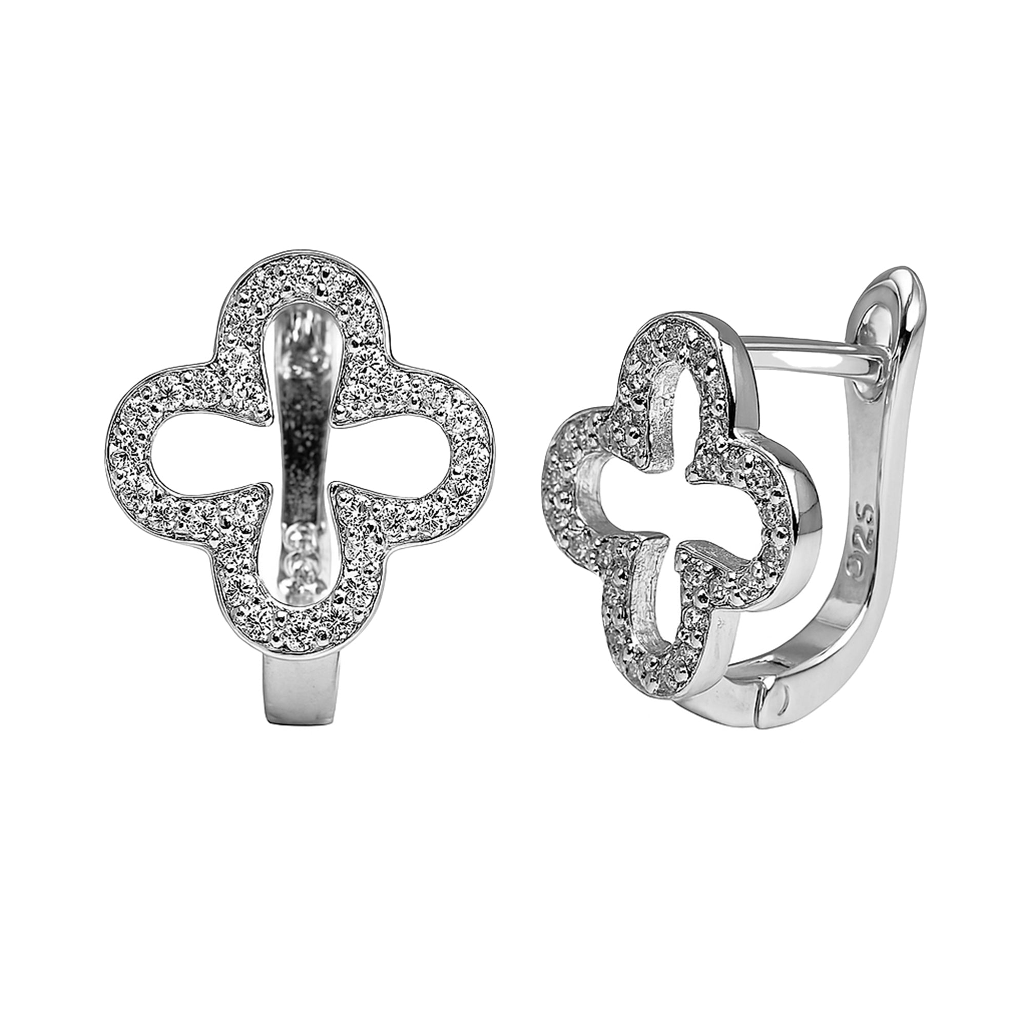 Huggies Flor Inspirado Van C Silueta con Micro Circonias Plata .925 con Rodio