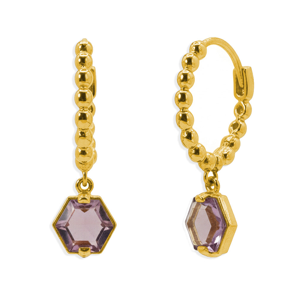Huggies con Circonia Morada Colgante Oro 10K