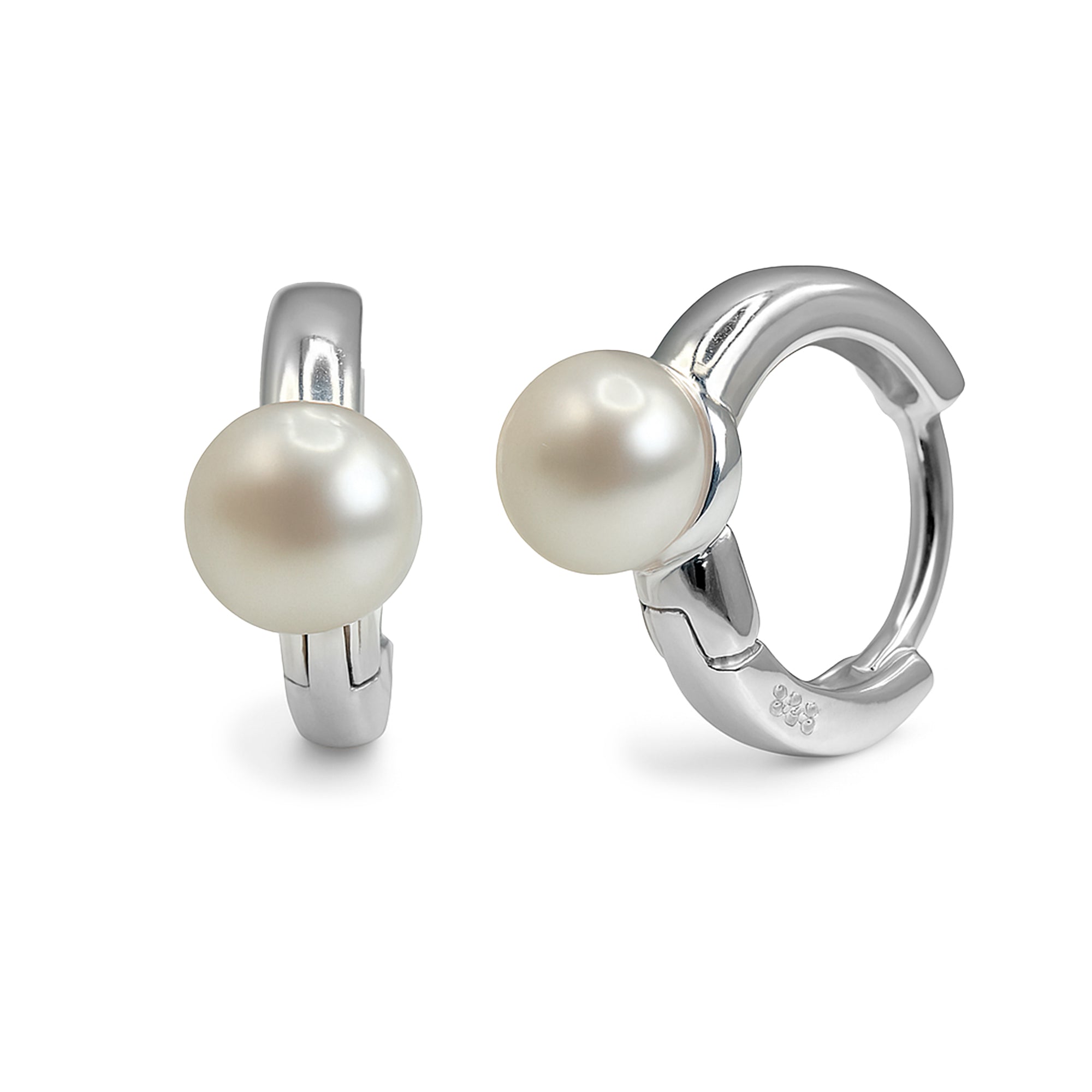 Huggies Chica con Perla Natural Plata .925, combinan con todo y te muestran siempre eleganteDescargar Imagen