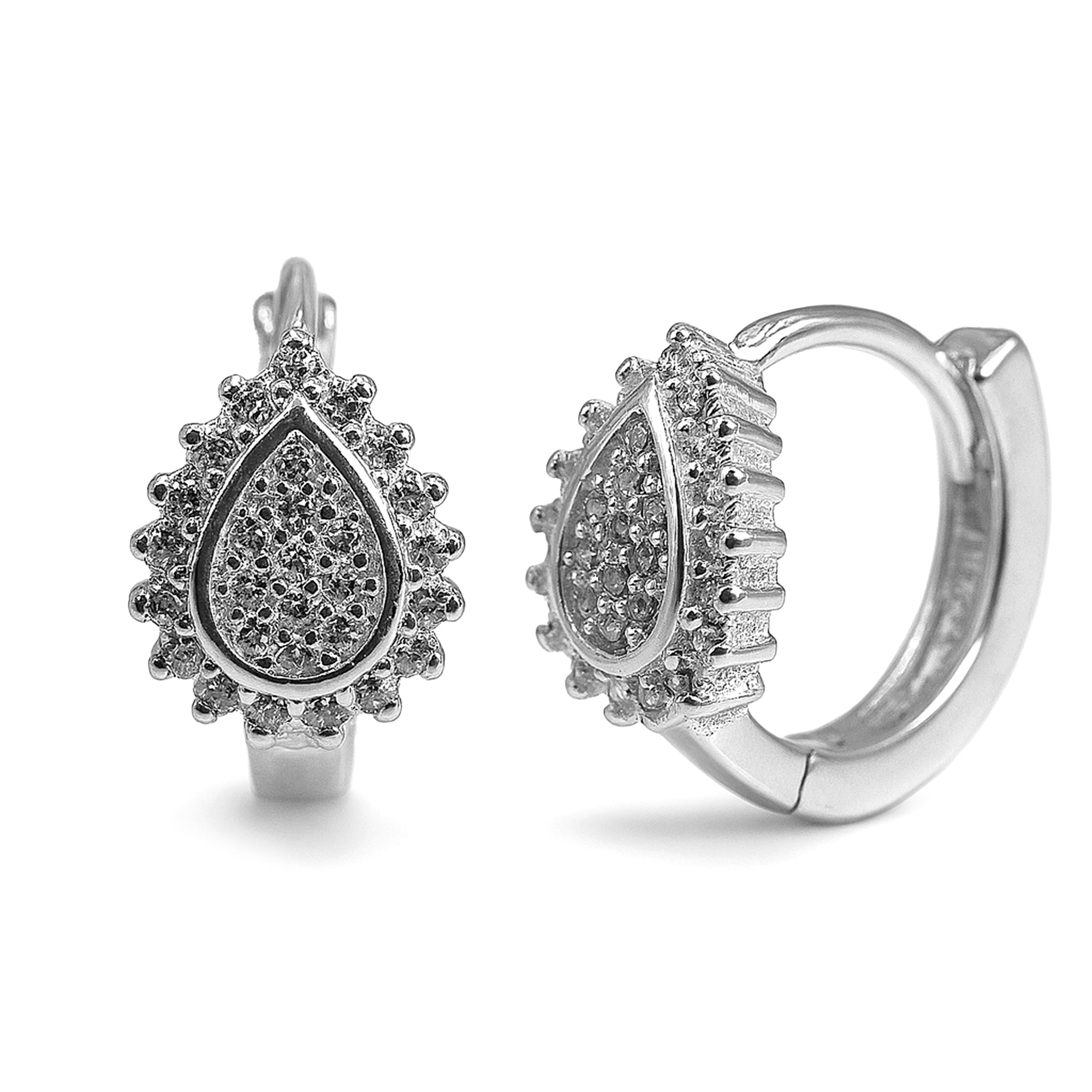 Huggies con Gota y Micro Circonias .925. Tamaño: 1.2 cm Eleva tu estilo.Descargar Imagen