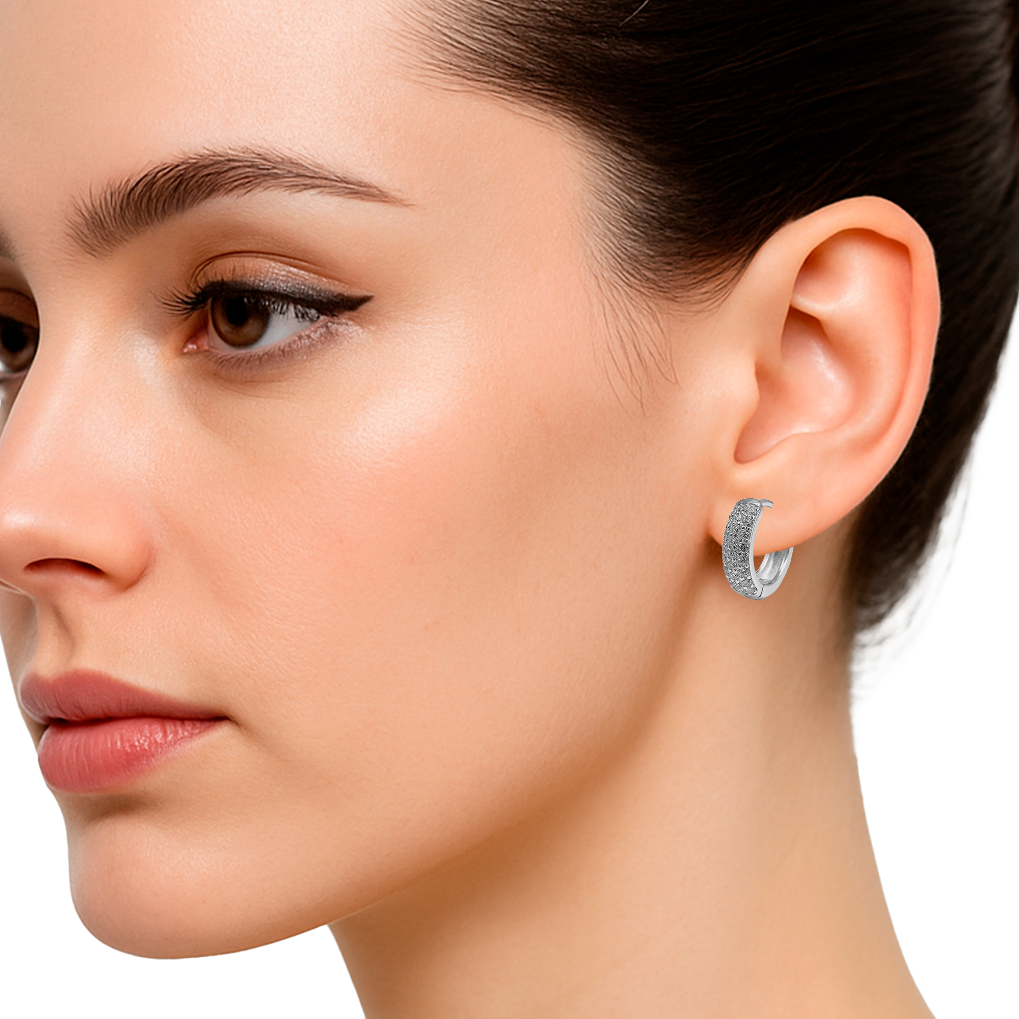 Huggies con Micro Circonias Plata .925. Tamaño: 1.2 cm, Versatilidad diaria