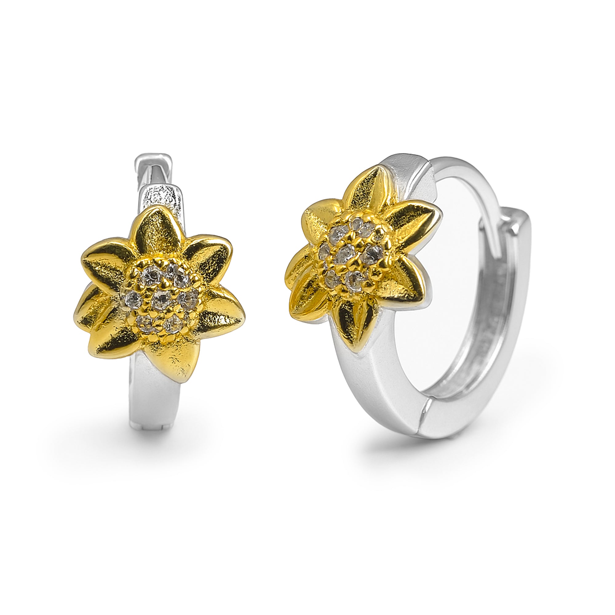 Huggies Flor con Micro Circonias Plata .925, disponible en flor blanca y amarilla