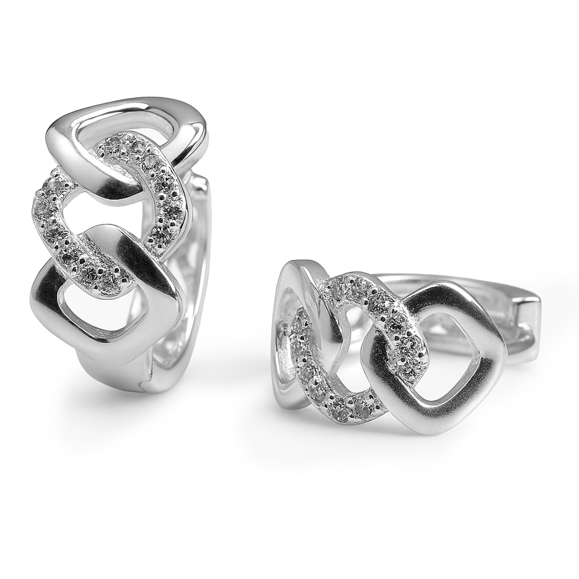 Huggies Ancha Eslabones con Micro Circonias Plata .925. Tamaño:1.5 cm