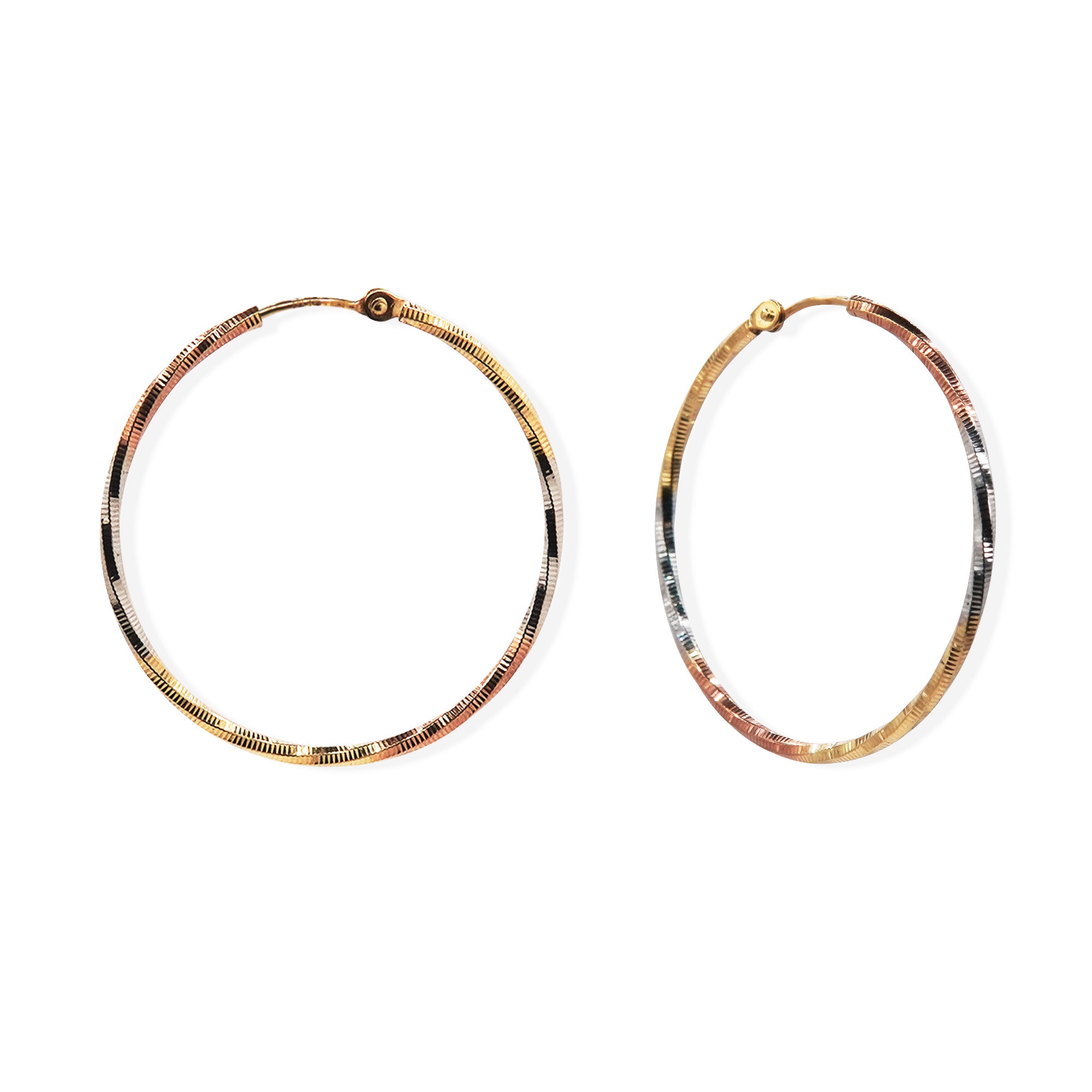 Arracada Torzal 3 Oros Rosa,Dorado y Blanco Diamantada 3.3cm Oro 10K