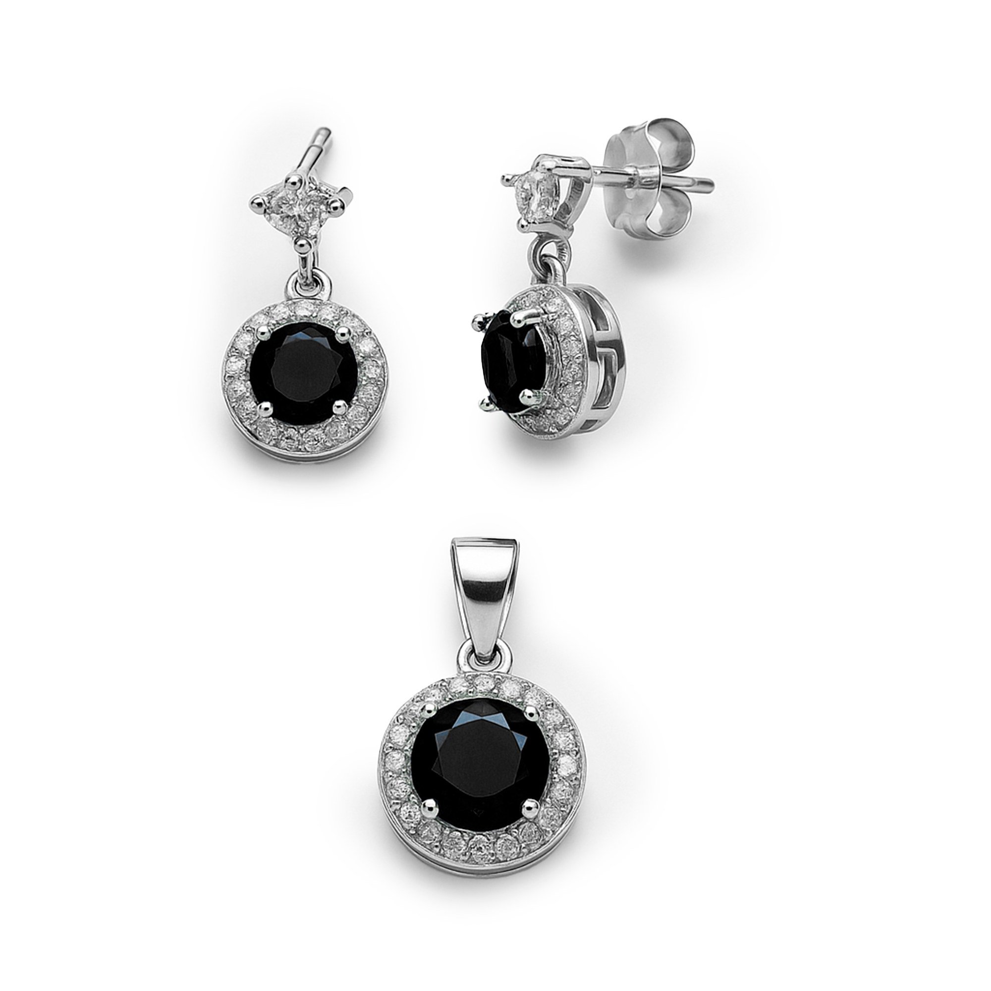 Juego Arete, Circonia Redonda con Microcirconias Plata .925 con Rodio Disponible en: Verde, Nregro, Azul Marino, Blanco y Rosa FuerteDescargar Imagen