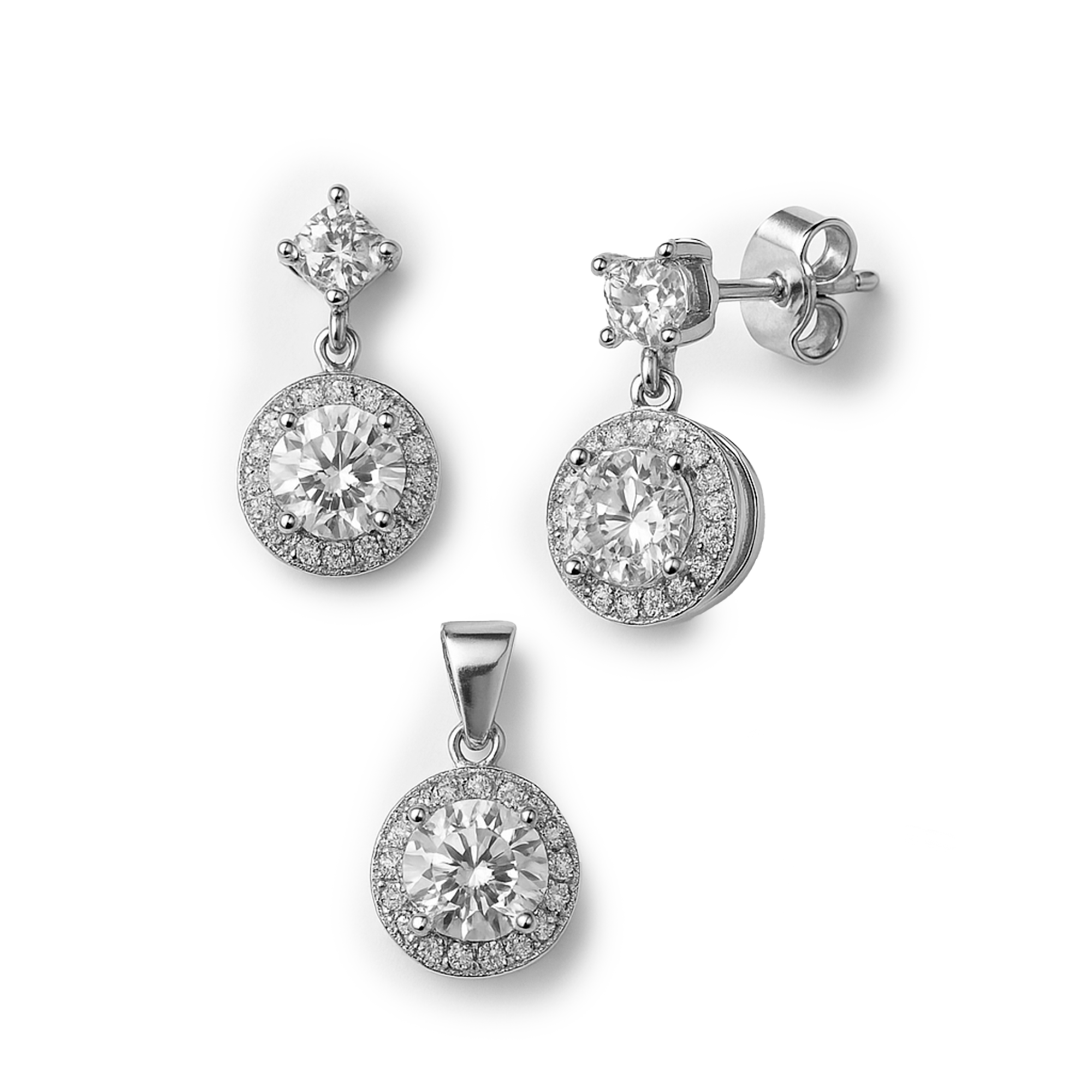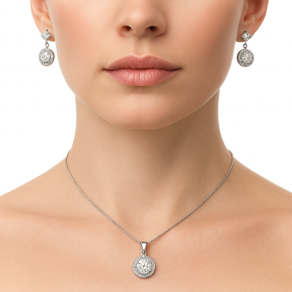 Juego Circonia Redonda con Micro Circonias Plata .925
