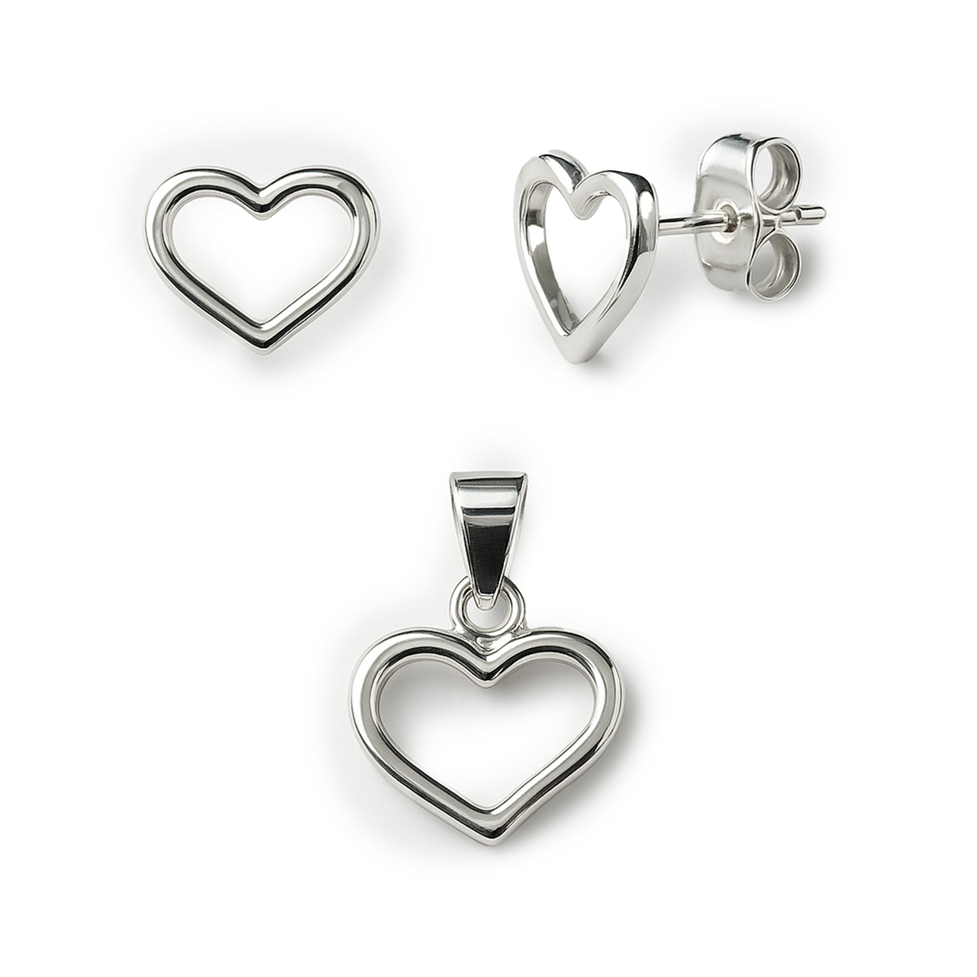 Juego Silueta de Corazón Liso Plata .925