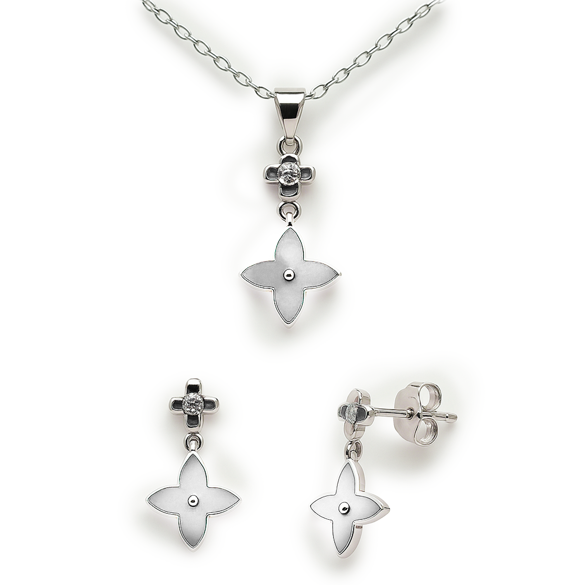 Juego Inspirado LV Piedras Naturales Plata .925 con Rodio