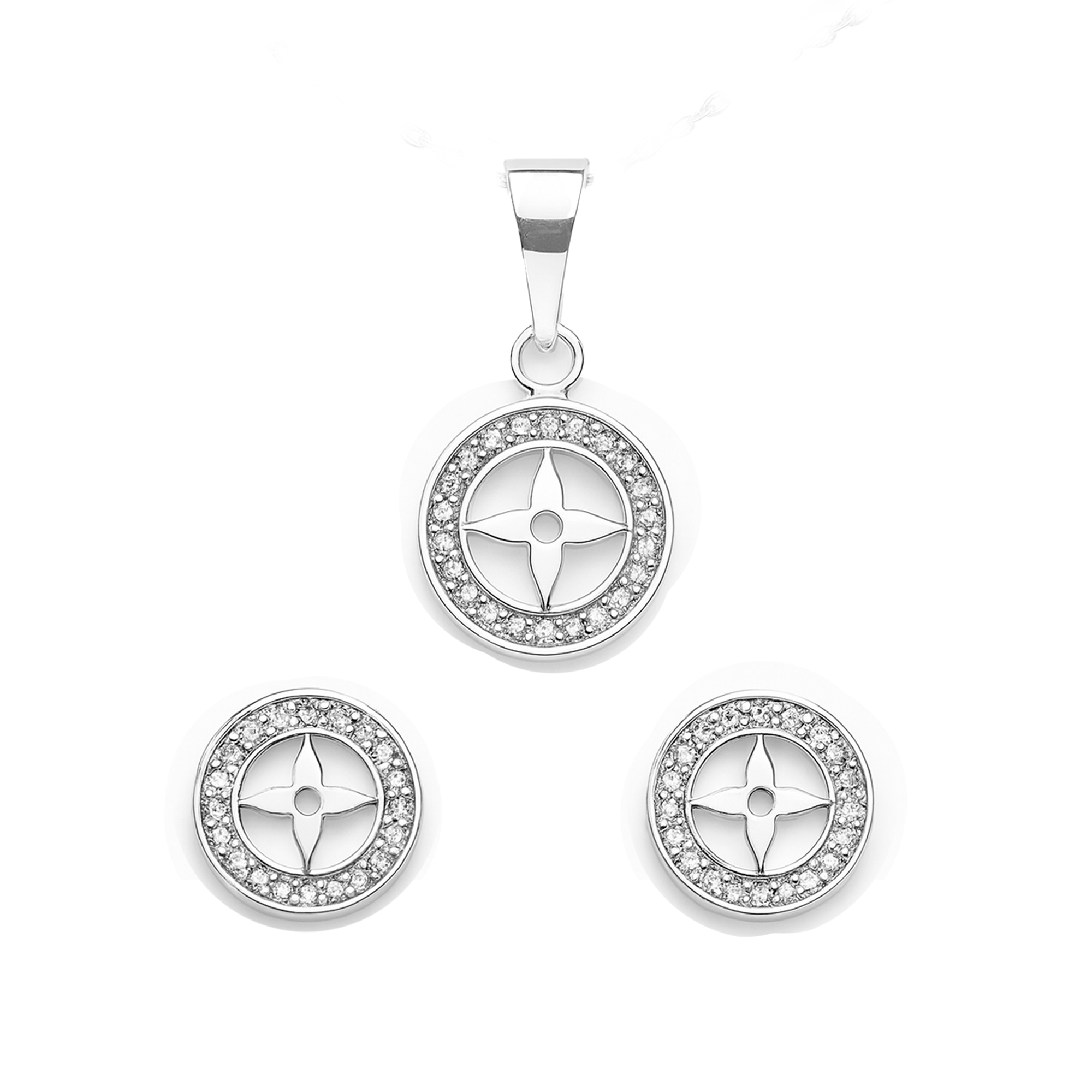 Juego Arete, Dije Económico Inspirado LV con Circonias Plata .925