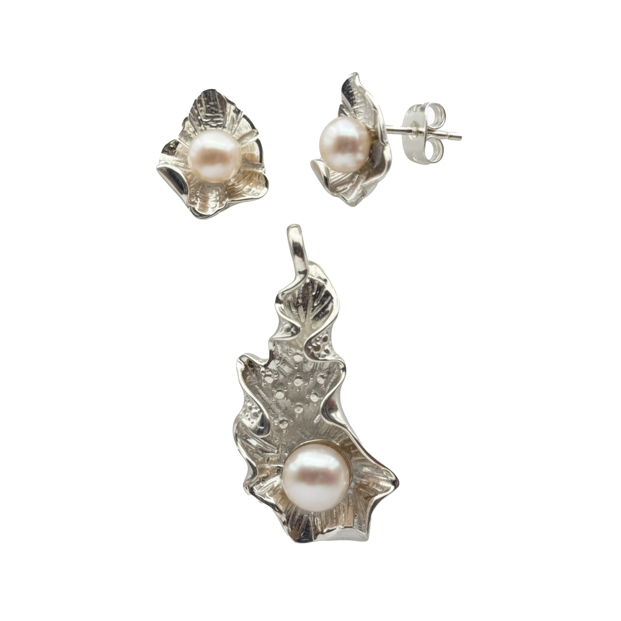 Juego Arete , Dije Perla Natural con Conchita Plata .925
