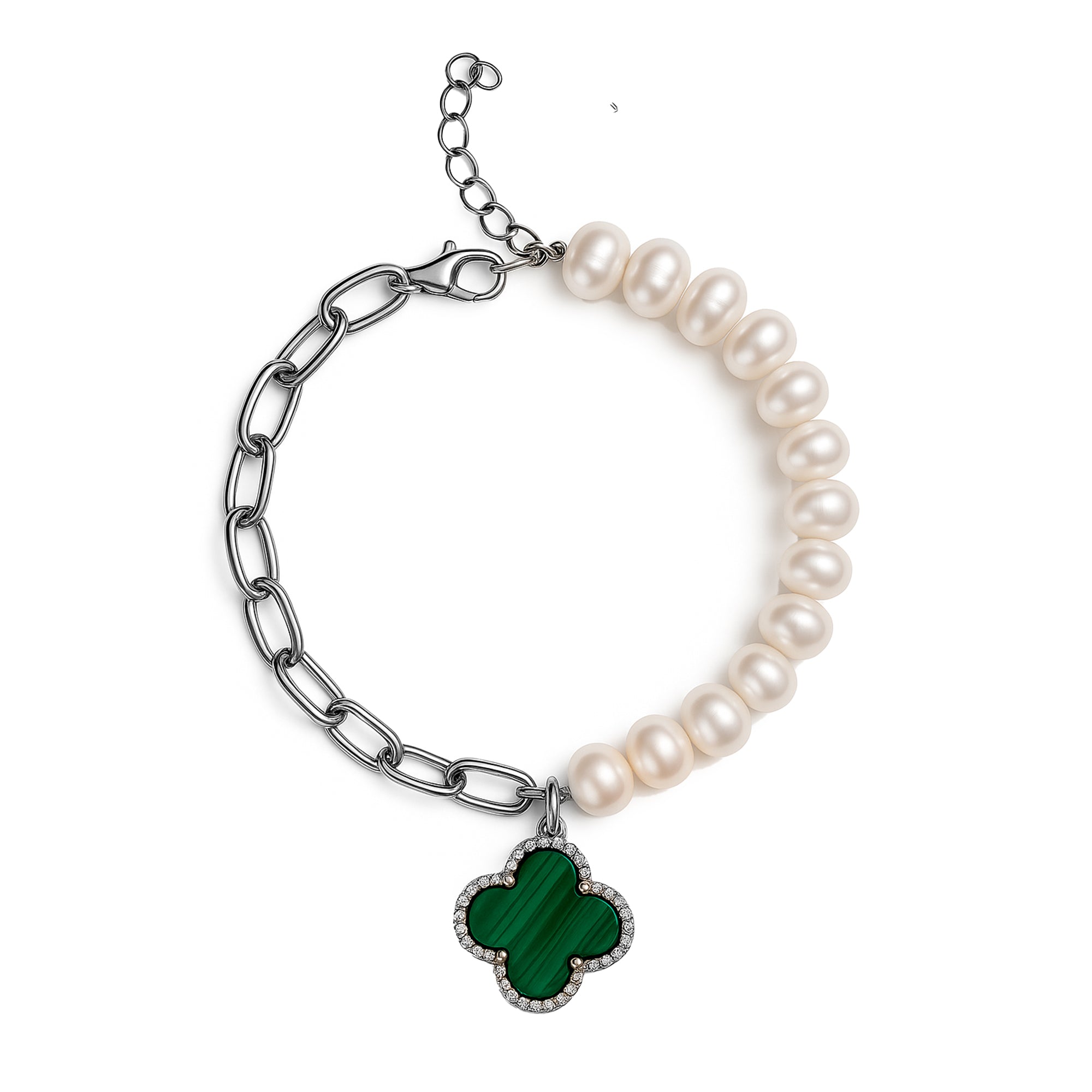 Pulsera Flor Inspirada Van C con Piedras Naturales Plata .925 con Rodio, disponibles en verde malaquita, negro ónix, blanco madre perla y cornalina