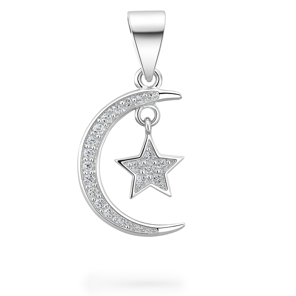 Dije Media Luna Estrella con Micro Circonias de 2.2cm Plata .925