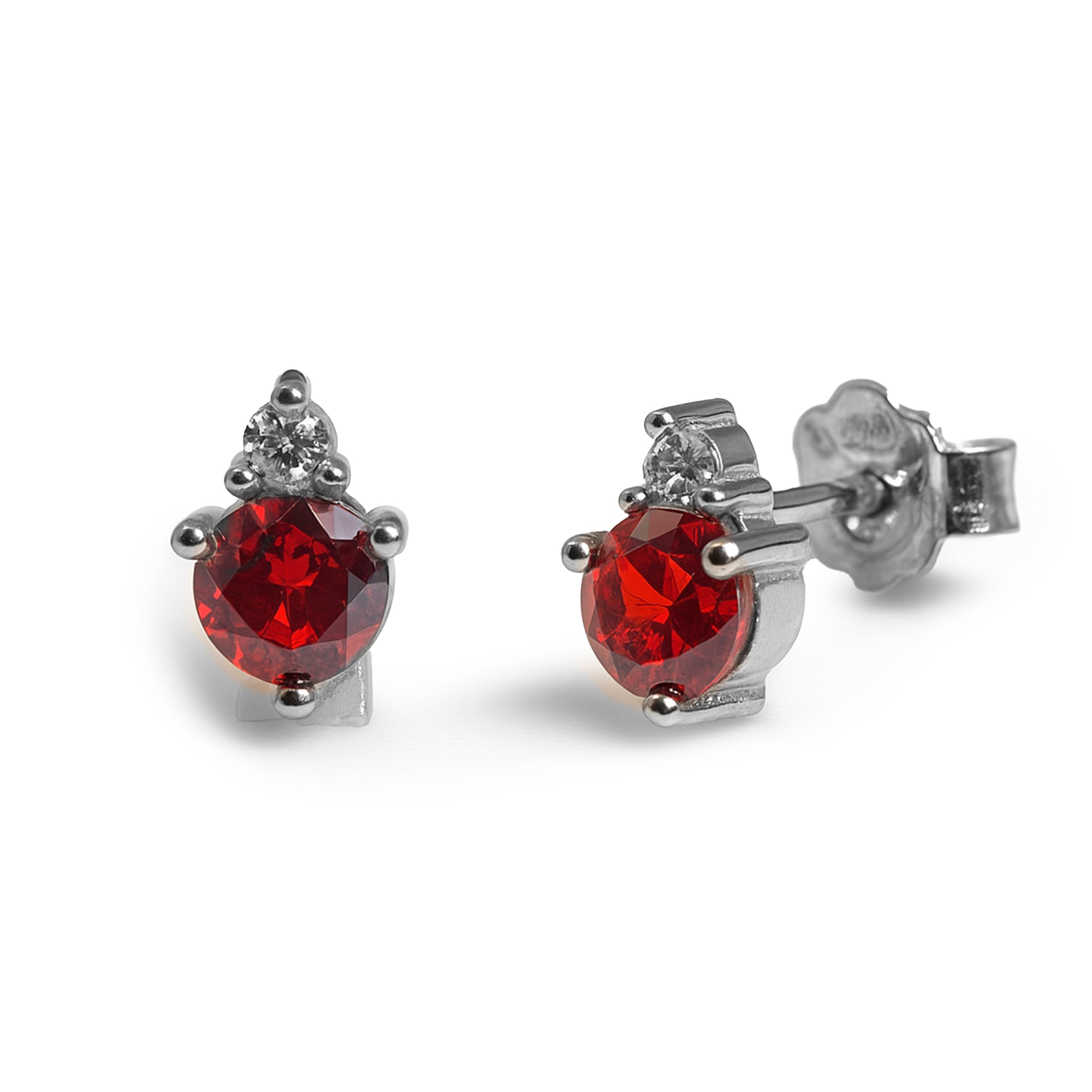 Broquel Circulo Rojo con Micro Circonia Arriba Blanca Plata .925 con Rodio