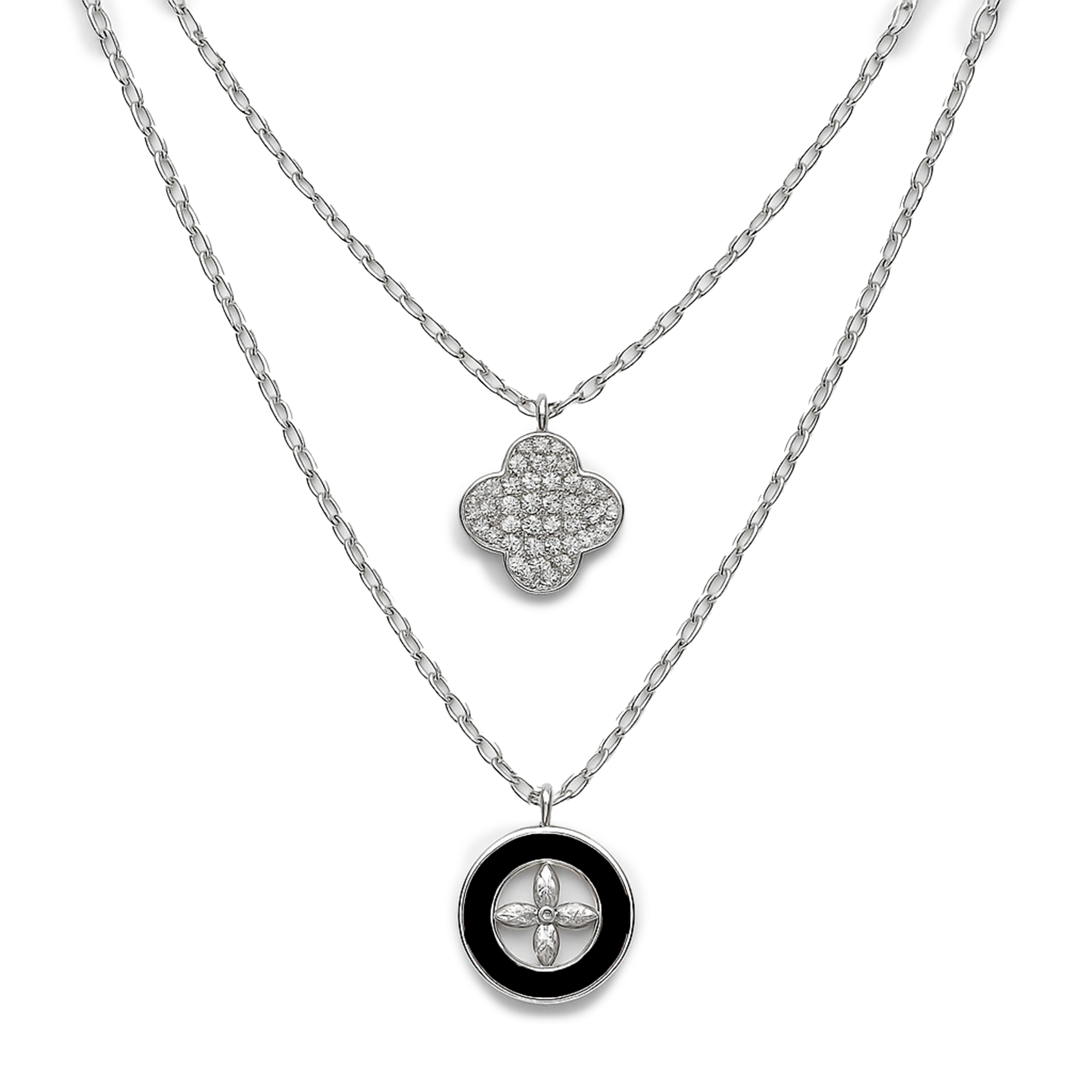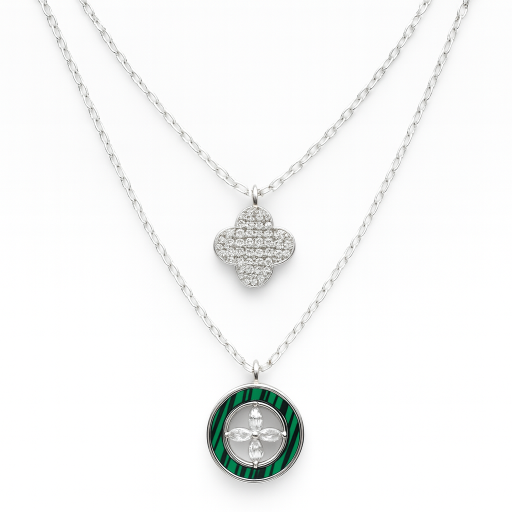 Collar Inspirado LV Piedras Naturales con Micro Circonias Plata .925 con Rodio