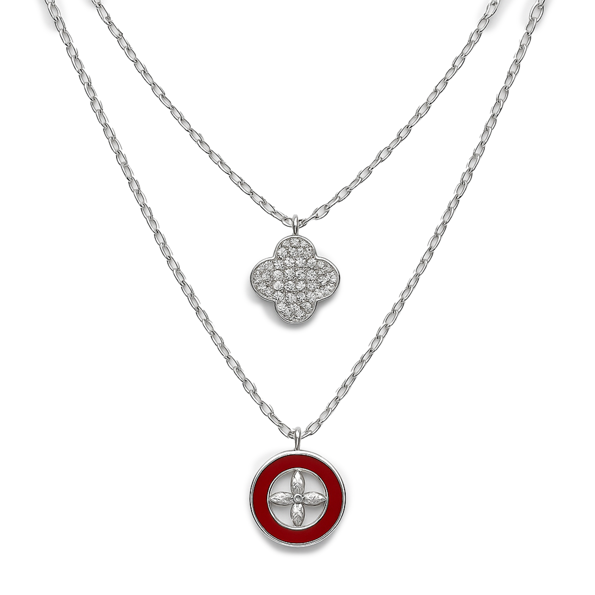 Collar Inspirado LV Piedras Naturales con Micro circonias Plata .925 con Rodio, disponible en verde malaquita, rojo ágata comprimida y negro ónixDescargar Imagen