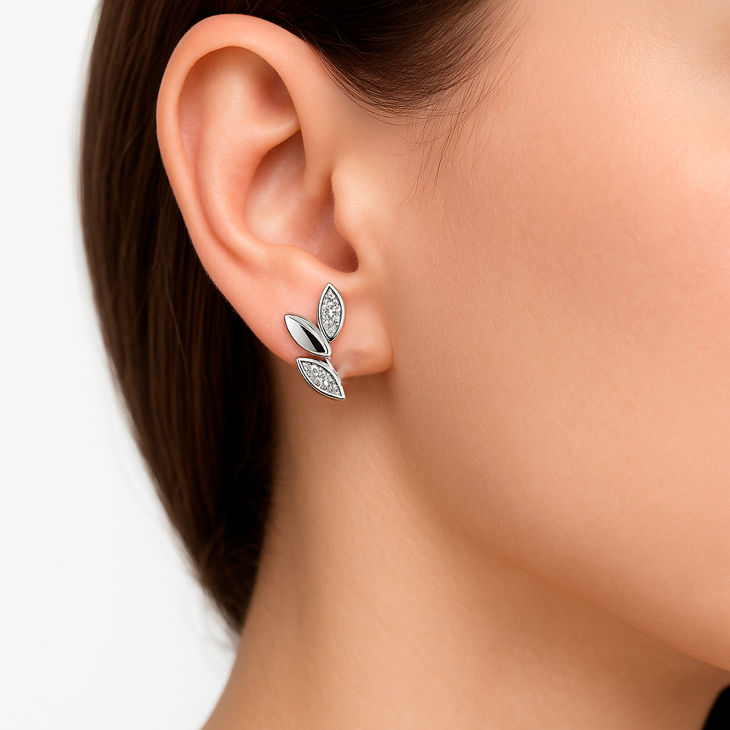 Broquel Semilla con Micro Circonias Plata .925 con Rodio