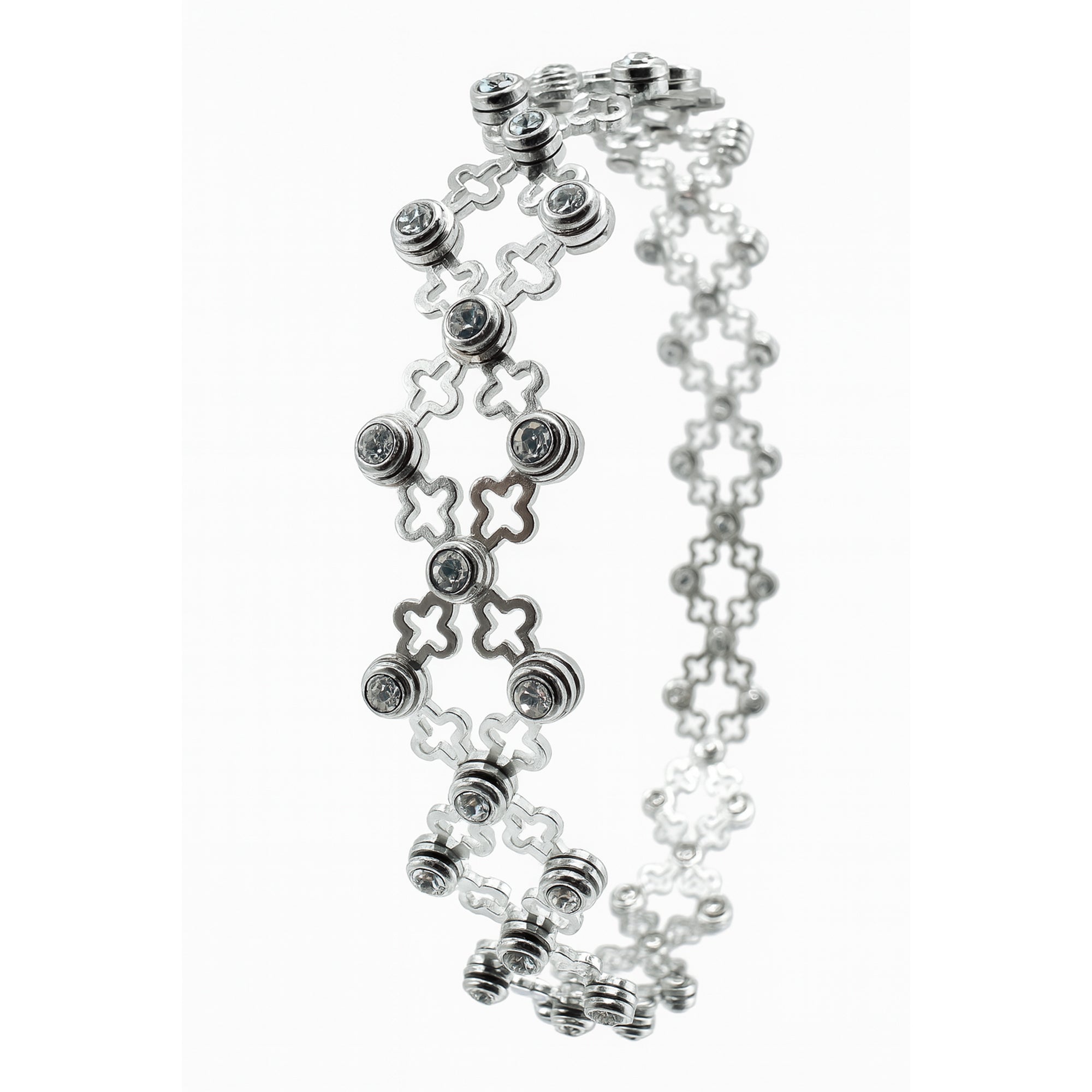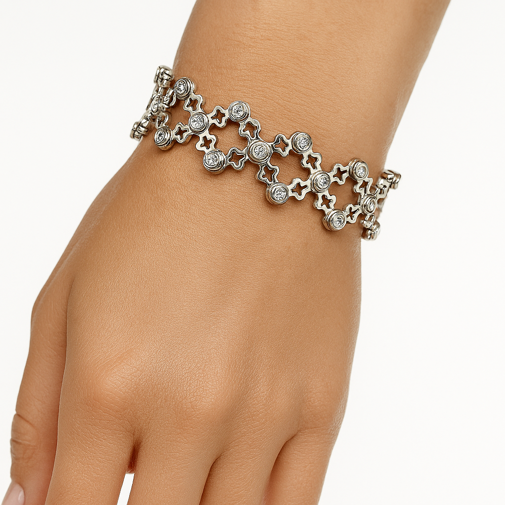 Brazalete Dos Usos Pulsera o Anillo 4 Flores con Circonias Plata .925 con Rodio