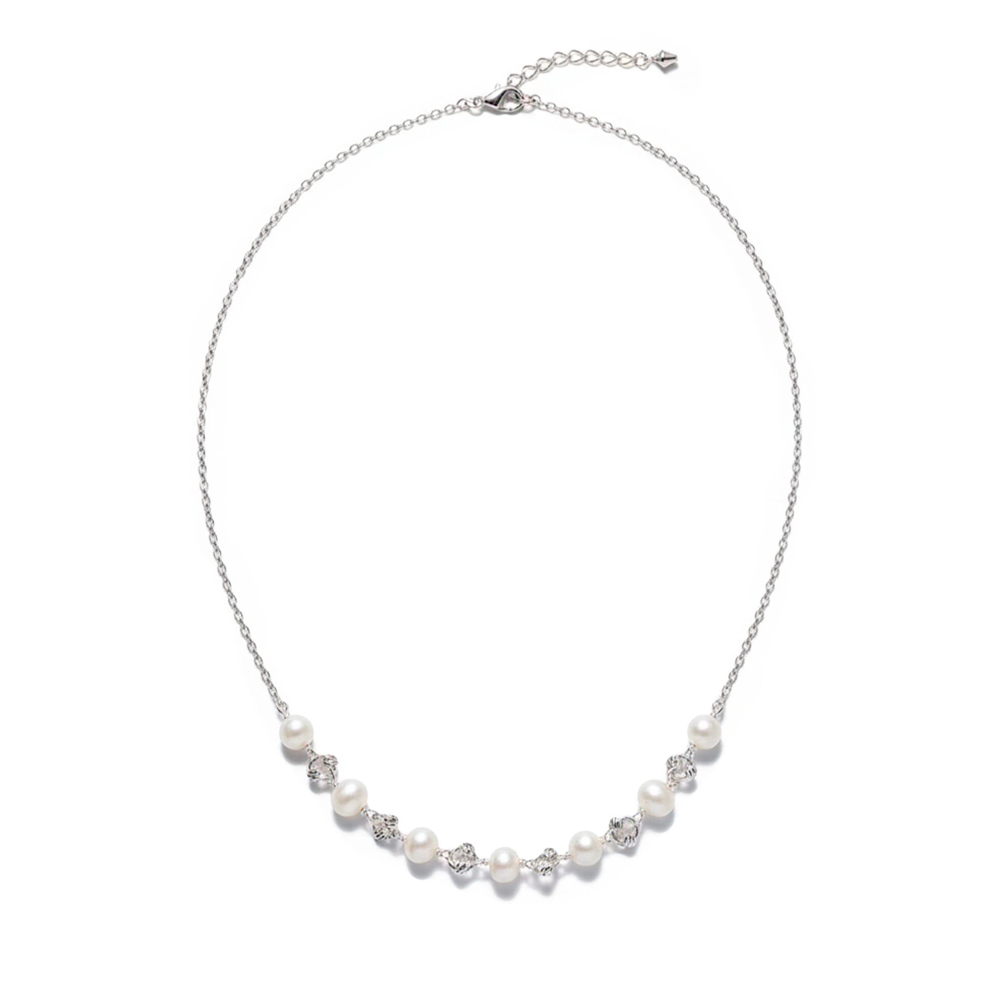 Collar Perla Natural con Bolita Diamantada Plata .925 mas ExtensiónDescargar Imagen