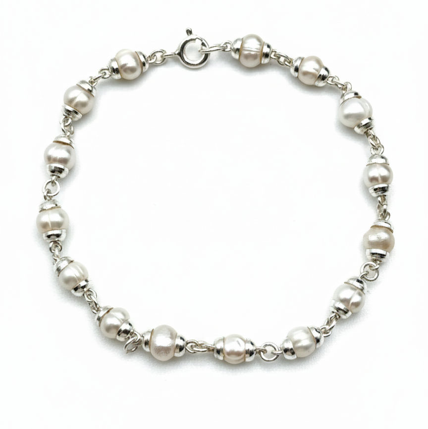 Pulsera Perla Natural con Eslabones Plata .925