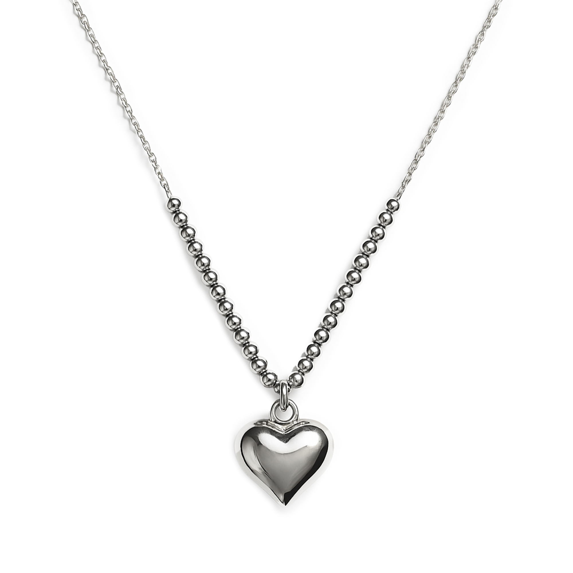 Collar Corazón Bombeado y Bolitas Lisas Plata .925