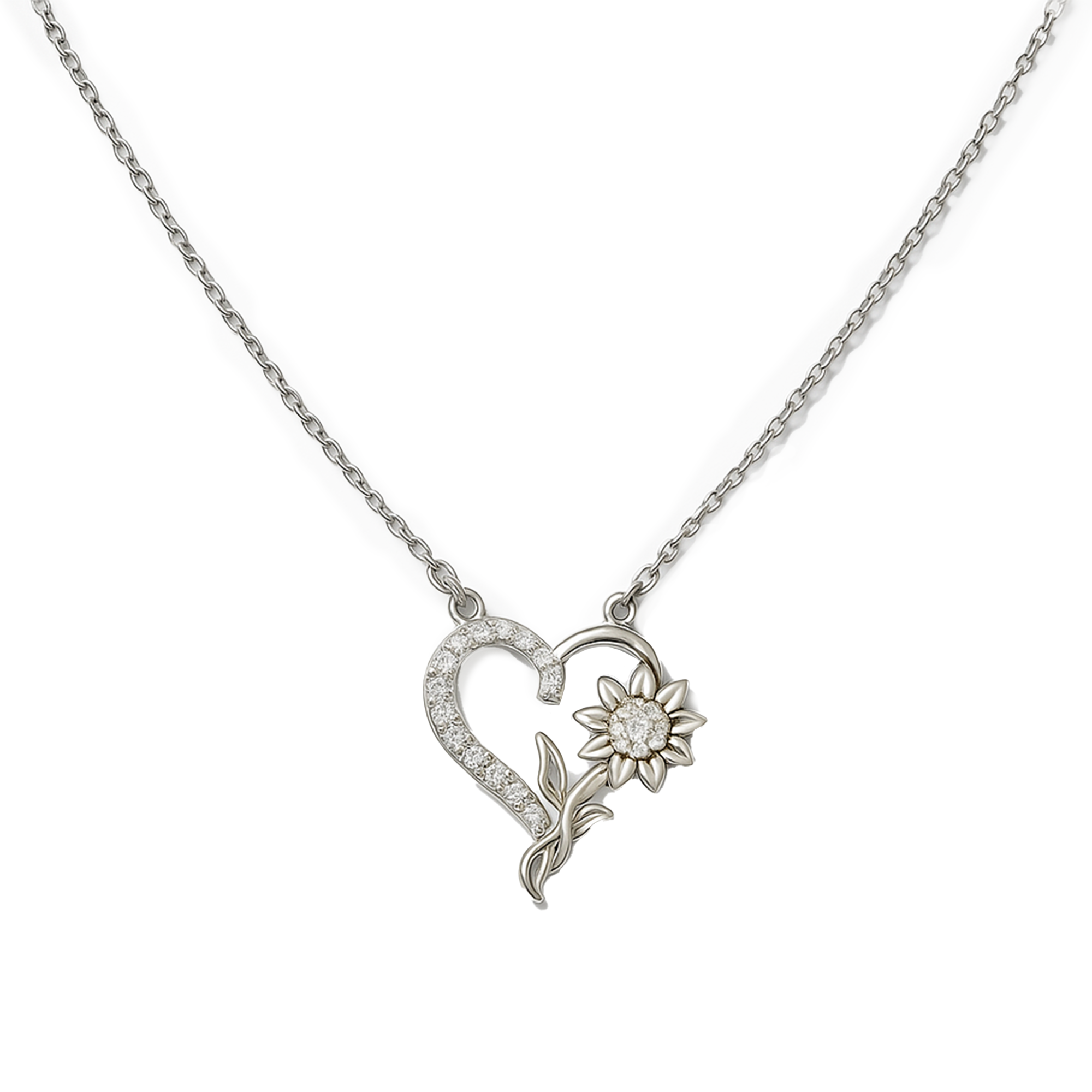 Collar Silueta Corazón con Girasol en Baño de Oro y Micro Circonias Plata .925 mas Extensión