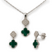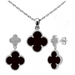 Set arete, collar inspirado Van flor negra rodio Plata .925