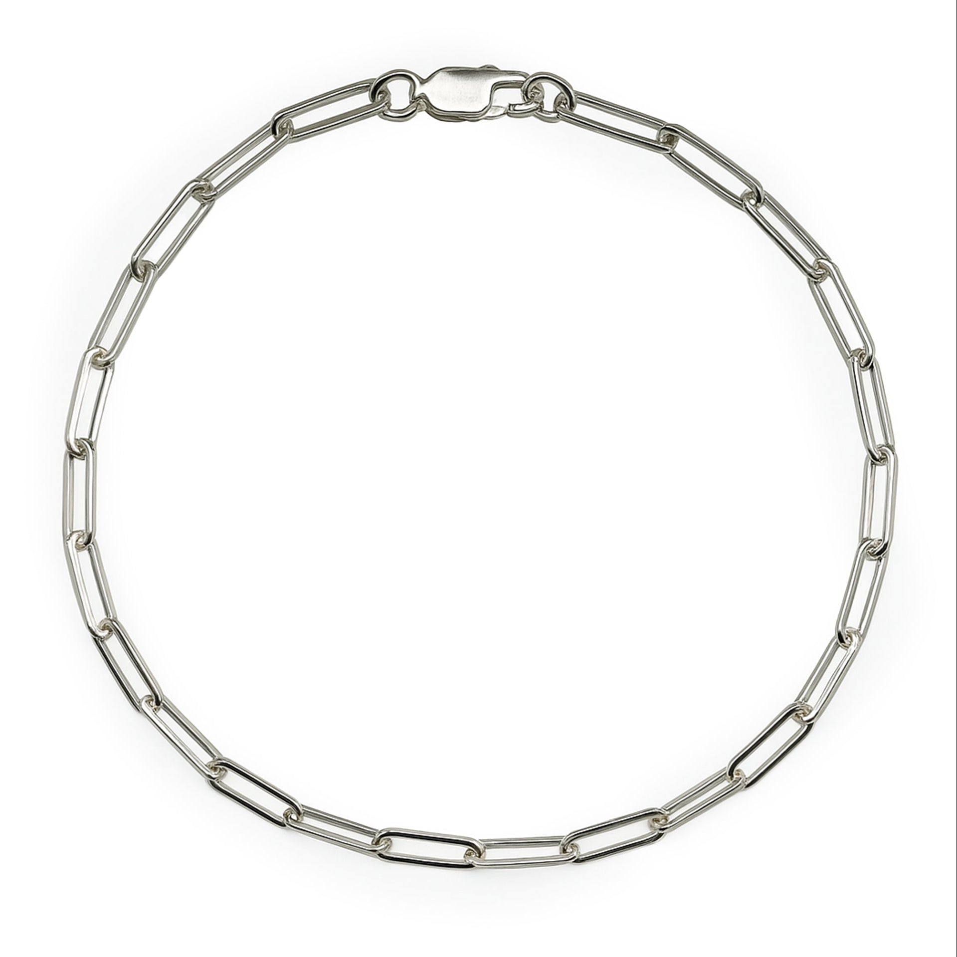 Pulsera Paper Clip Eslabon .7mm Liso Plata .