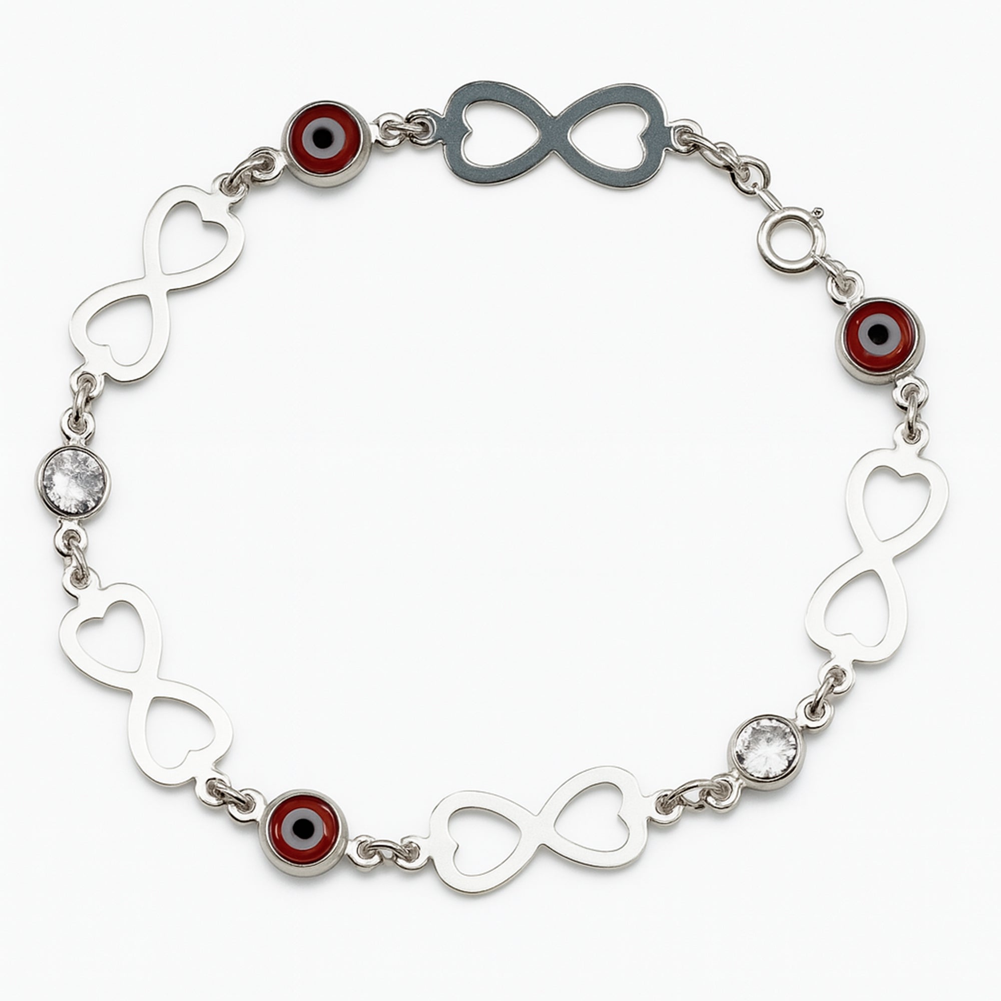 Pulsera Infinito con Ojo Turco Rojo Plata .925Descargar Imagen
