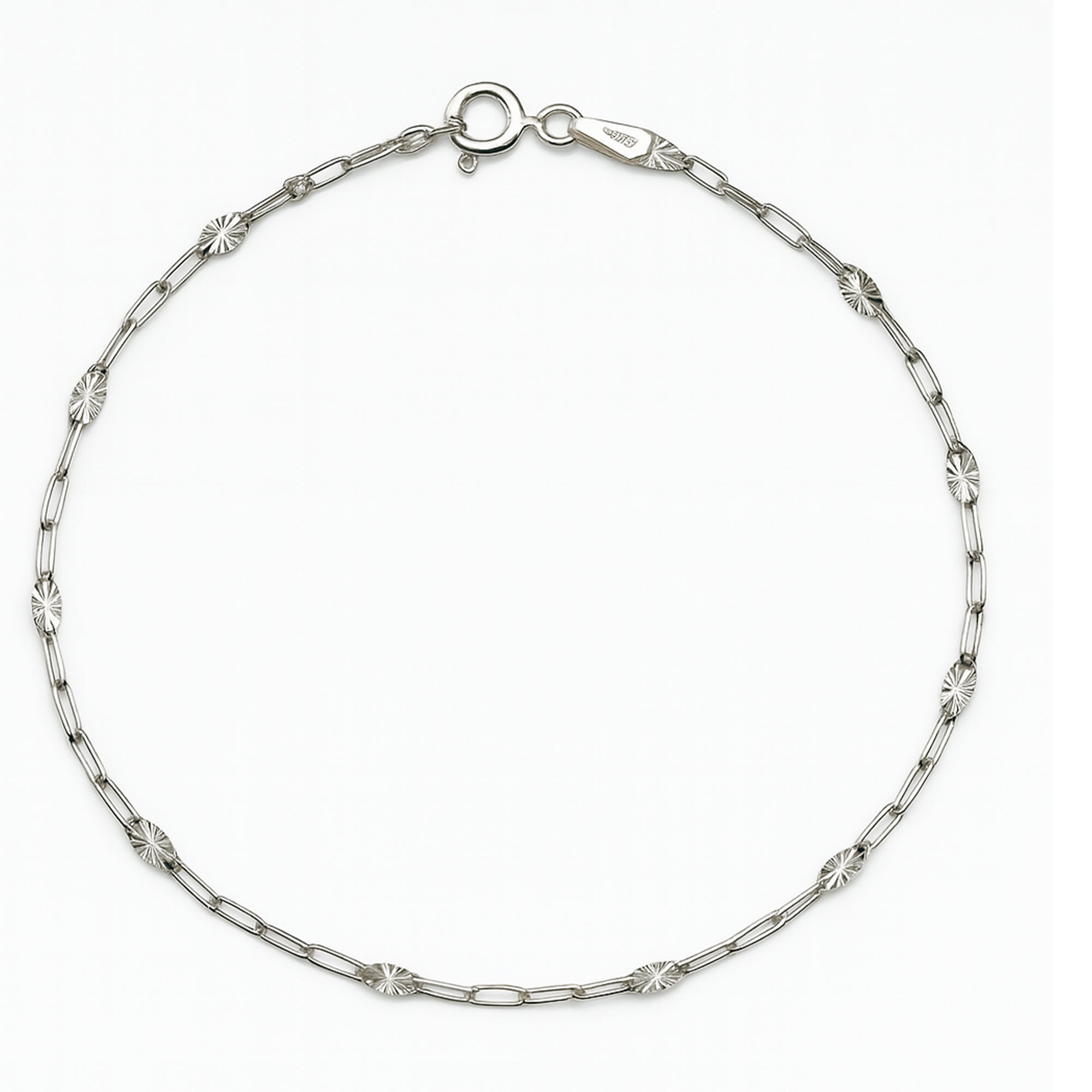 Pulsera Paper Clip con Estabon Serpentina Diamantada Plata .925Descargar Imagen