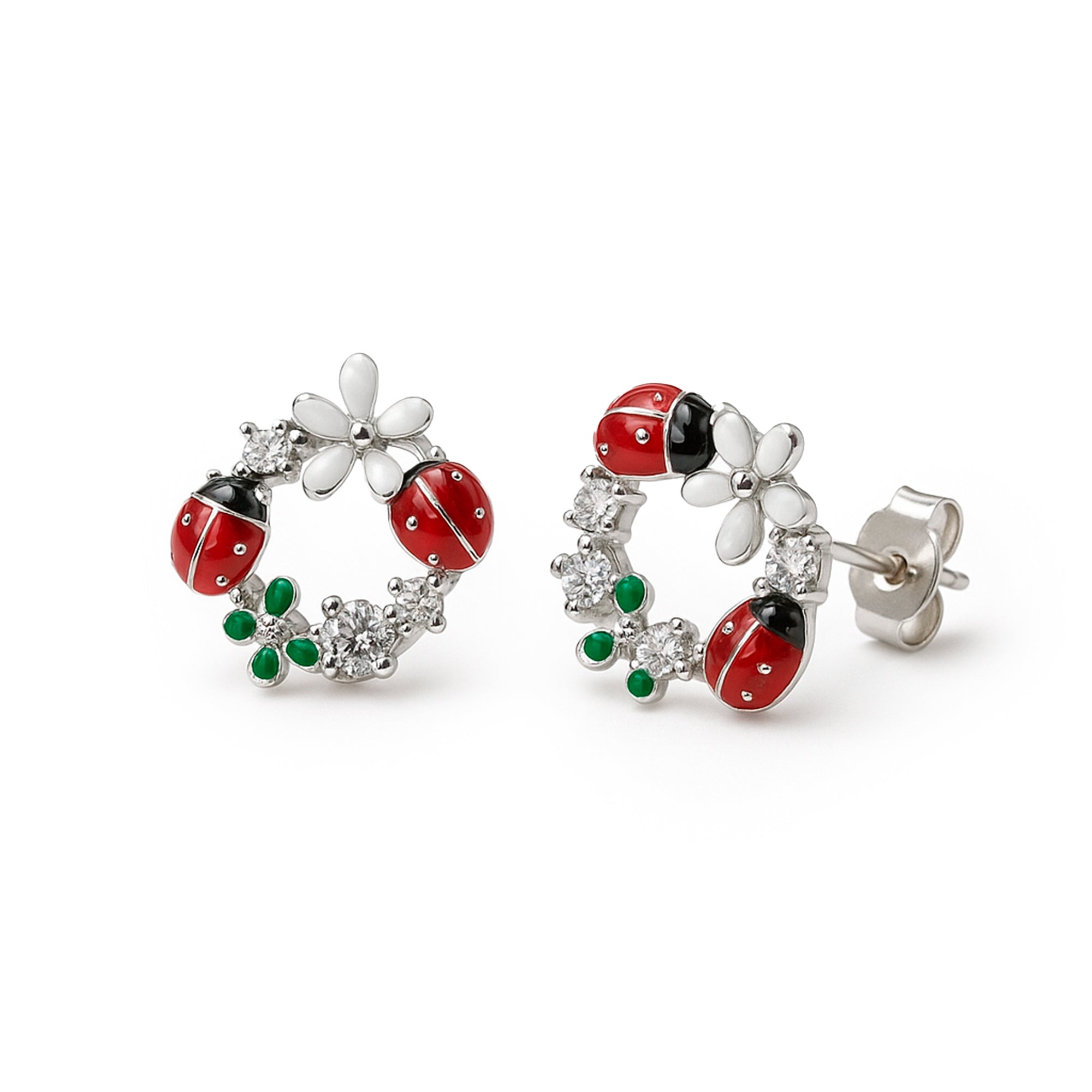 Broquel Catarina y Flores Esmaltadas con Circonias Plata .925 con Rodio