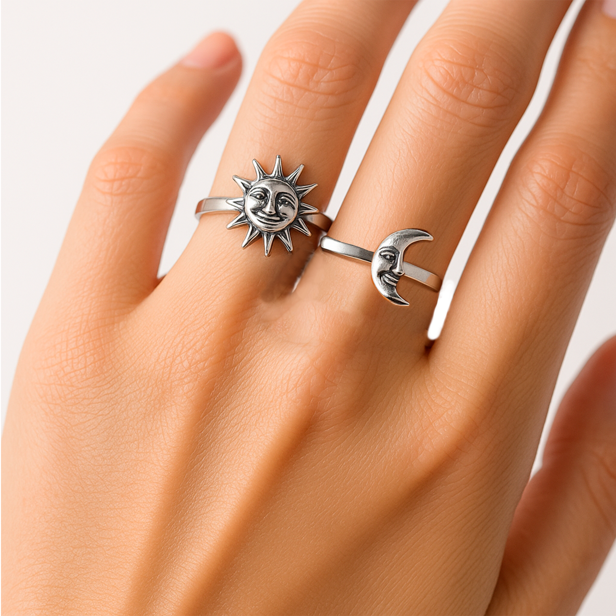Anillo Oxidado Duo Sol y Luna Plata .925