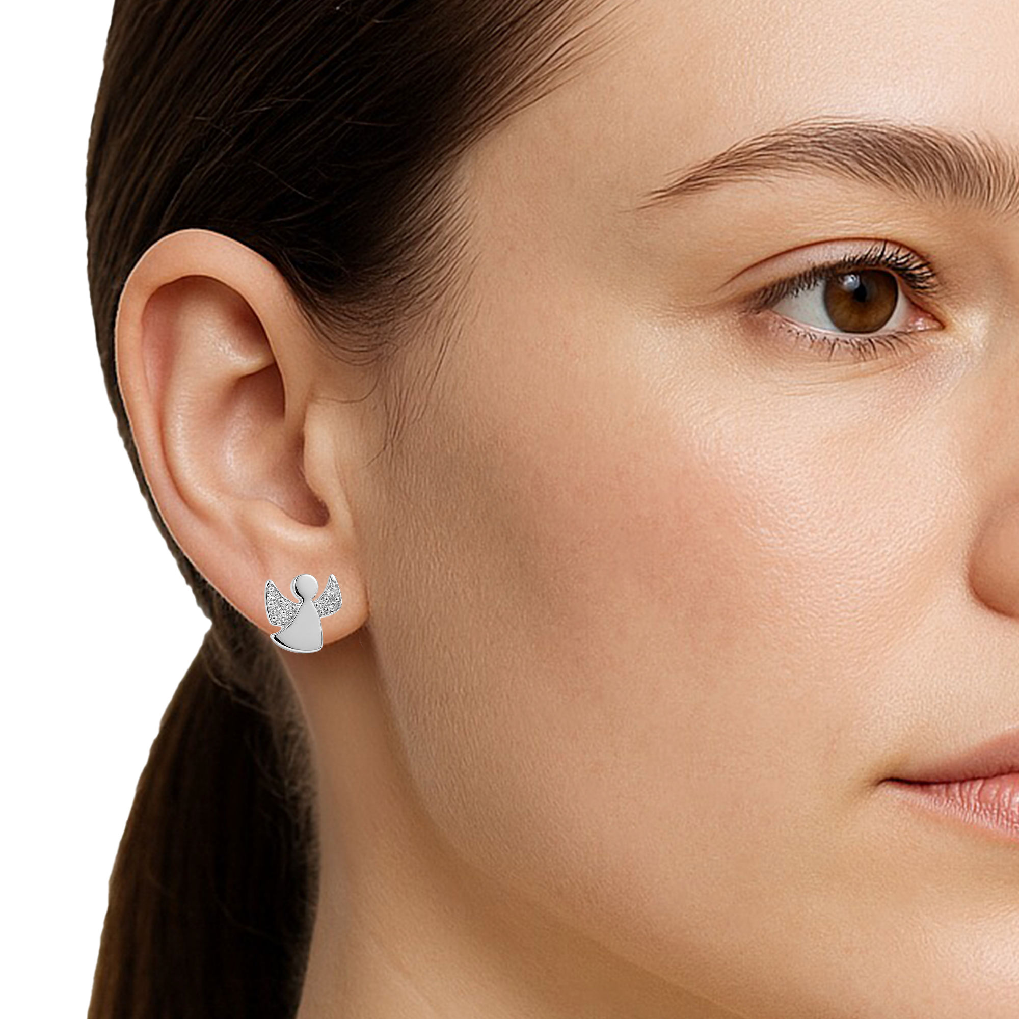 Broquel Angel con Alas de Multi circonias y baño de rodio plata .925