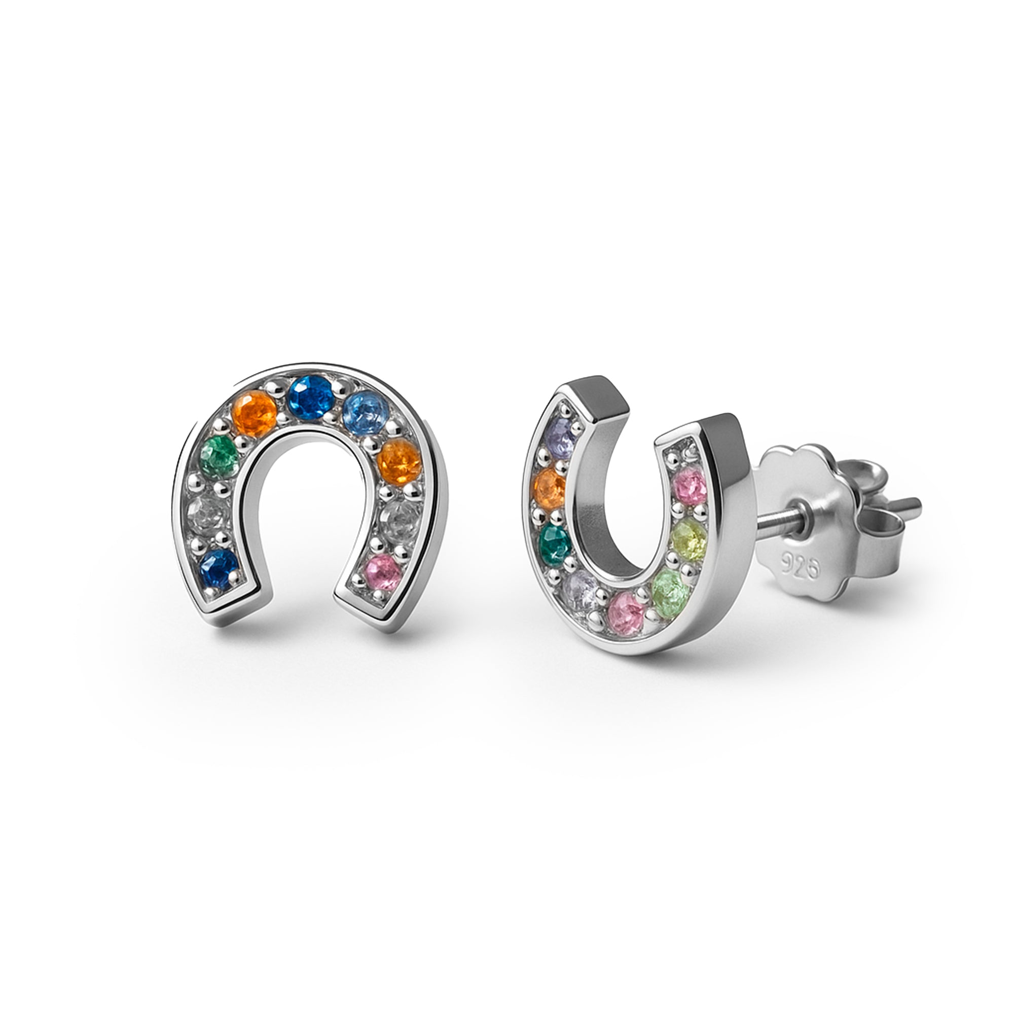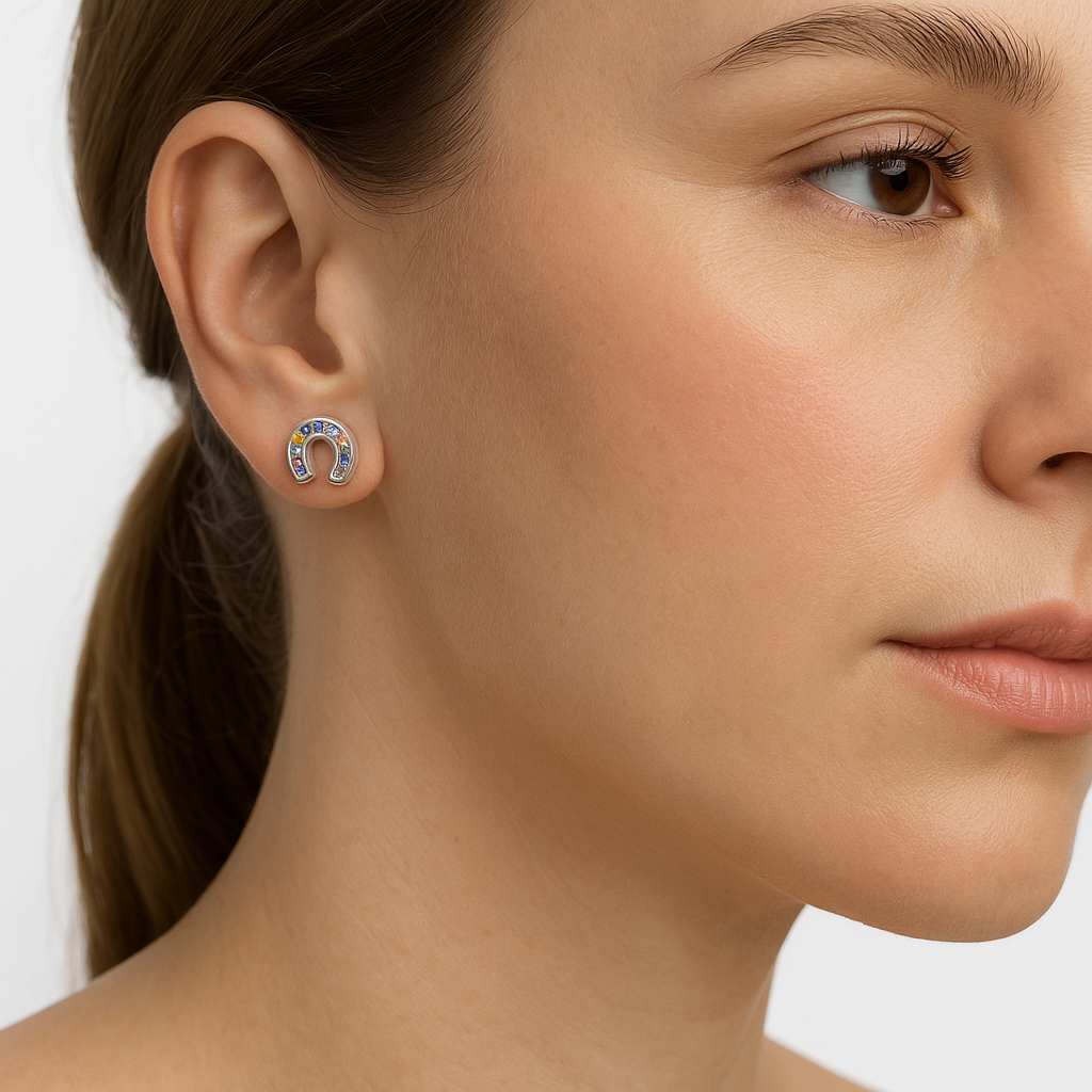 Broquel Herradura con Circonias Multicolor Plata .925 con Rodio