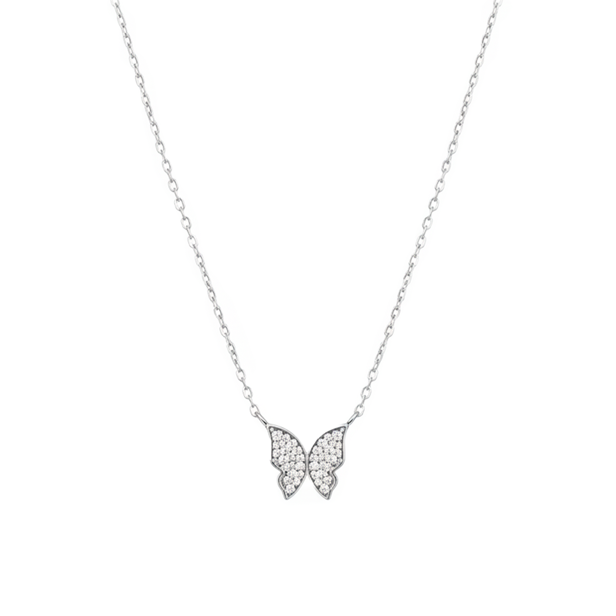 Collar Mariposa con Micro Circonias Plata .925 con Rodio mas Extensión