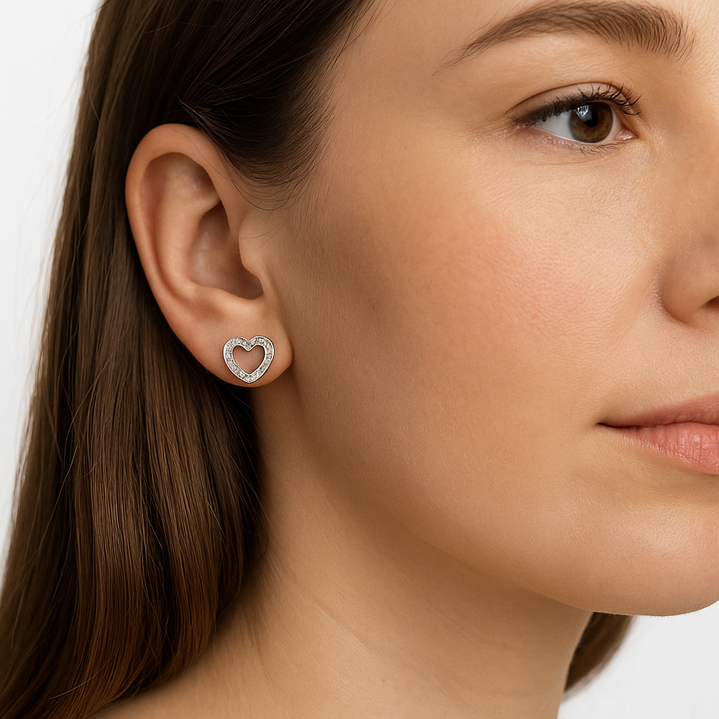 Broquel Silueta de Corazón con Micro circonias Plata .925
