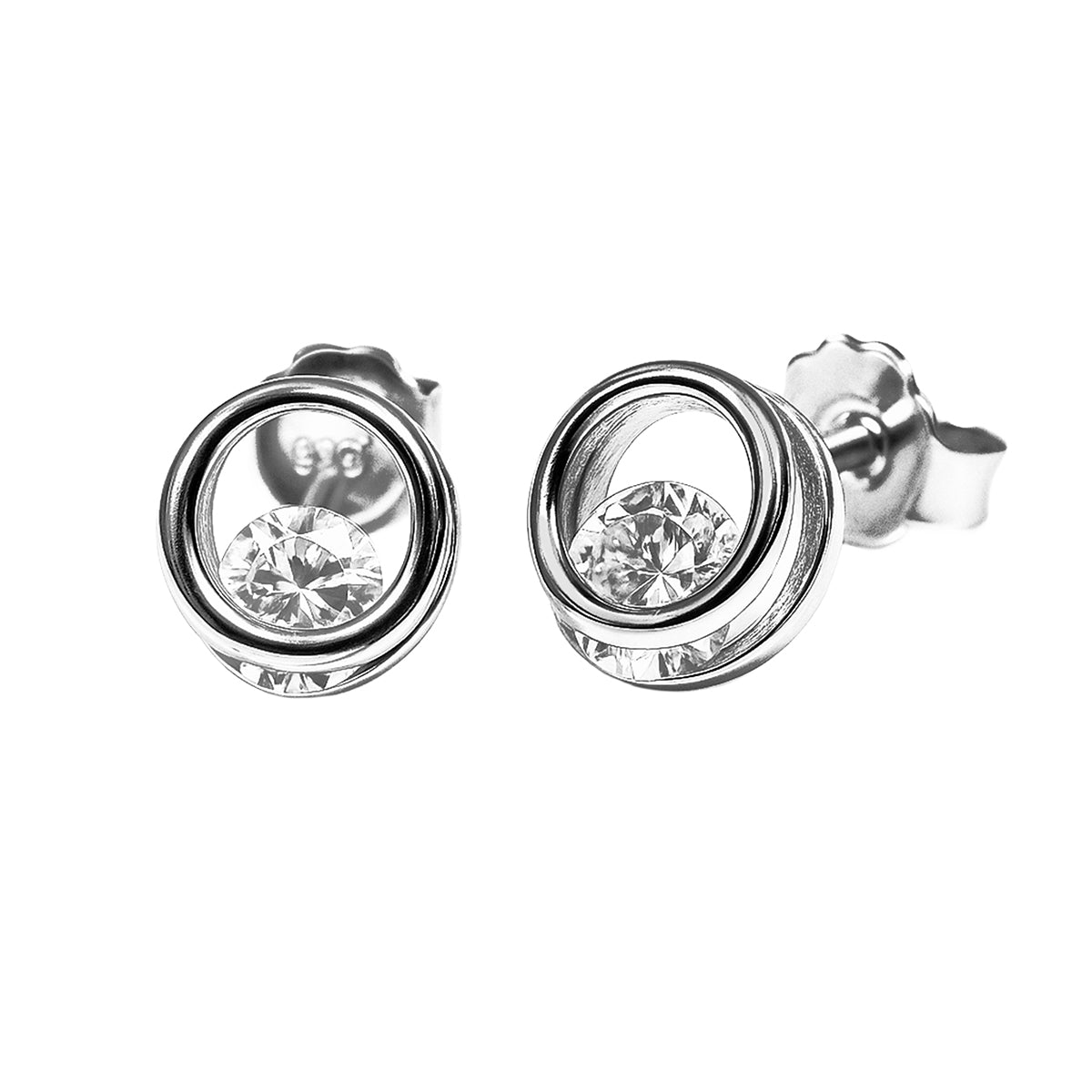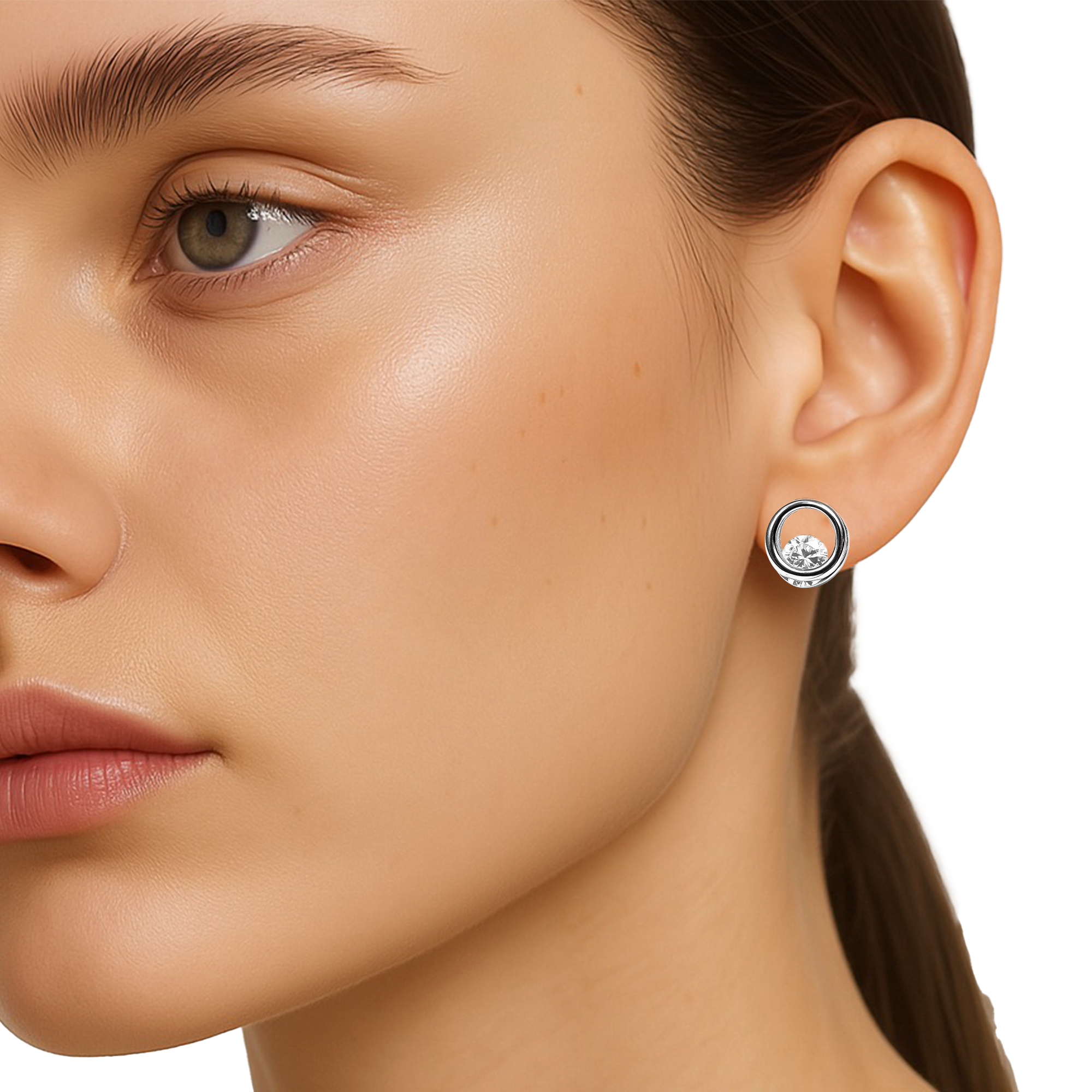 Broquel Doble Circulo con Circonia Plata .925 con Rodio