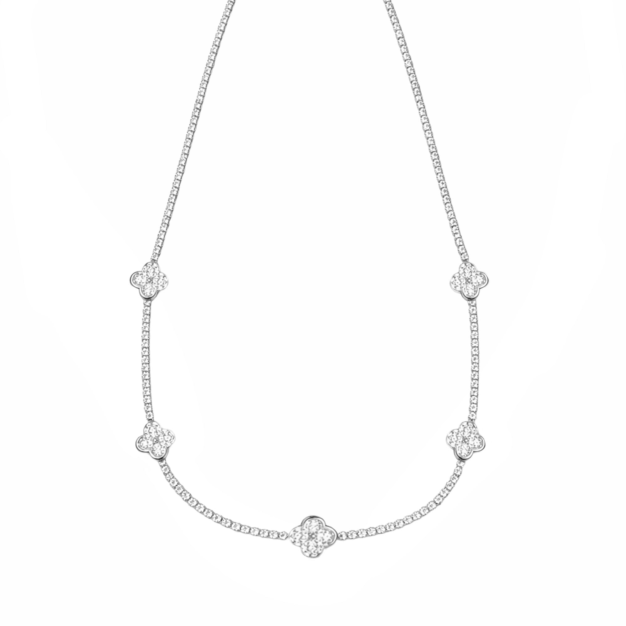 Collar Flor Ajustable Inspirado Van C con Micro Circonias Plata .925 con Rodio