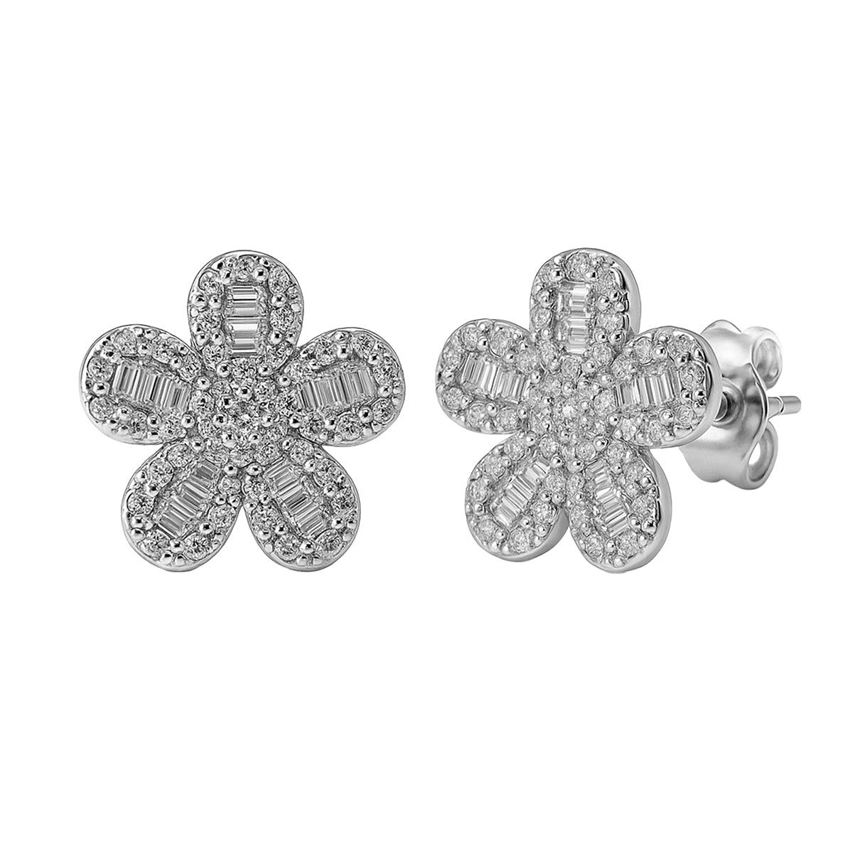 Broquel Flor con Micro circonias y circonias baguette Plata .925 con Rodio