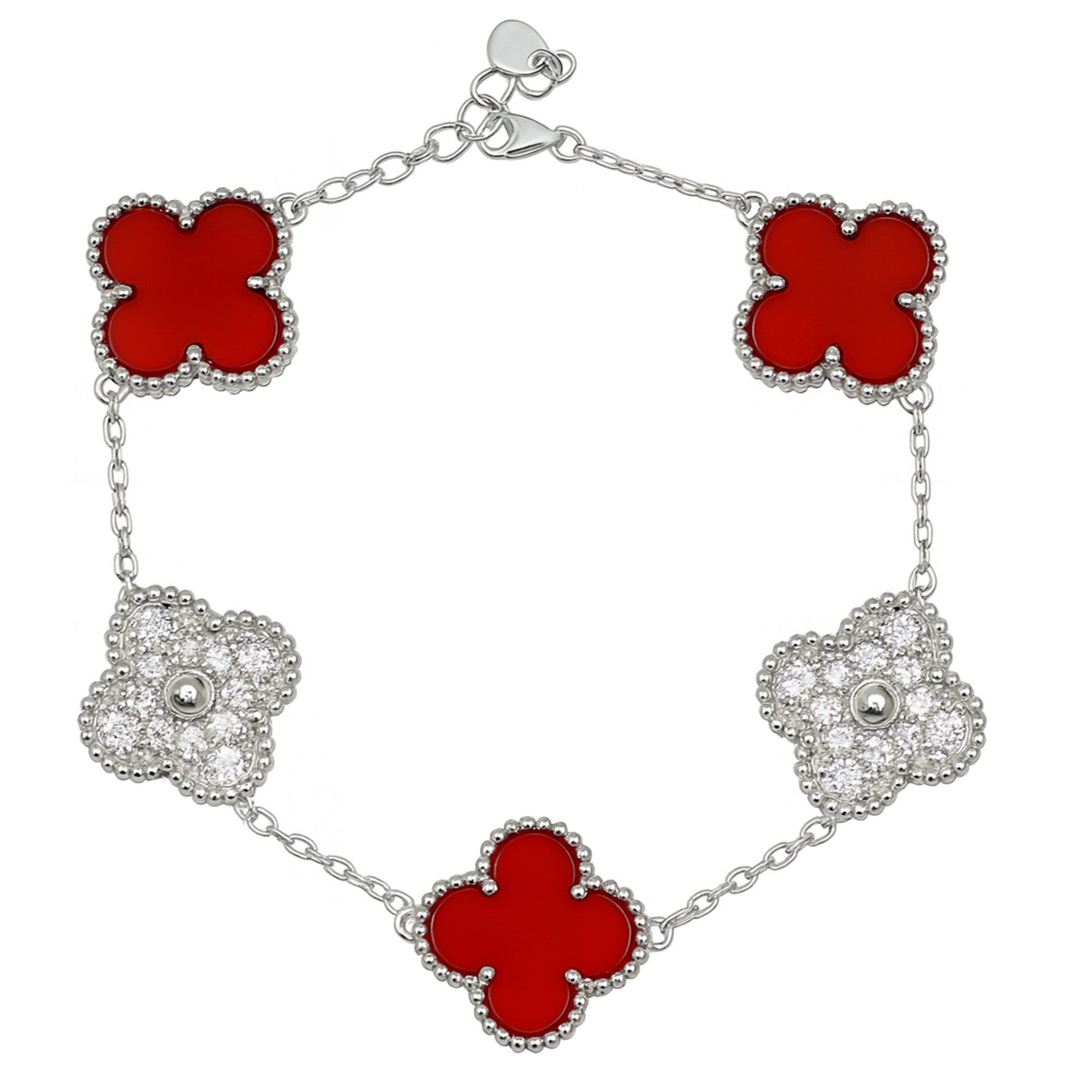 Pulsera inspirada van c flor cornalina naranja con circonias y rodio mas extensión plata .925