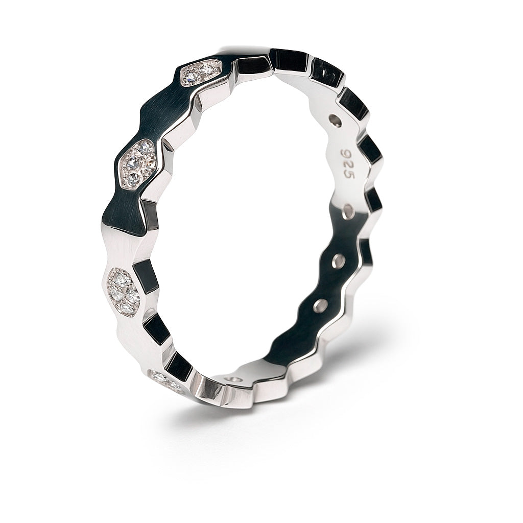 Anillo Churumbela Circonias Hexágono Plata .925 con RodioDescargar Imagen