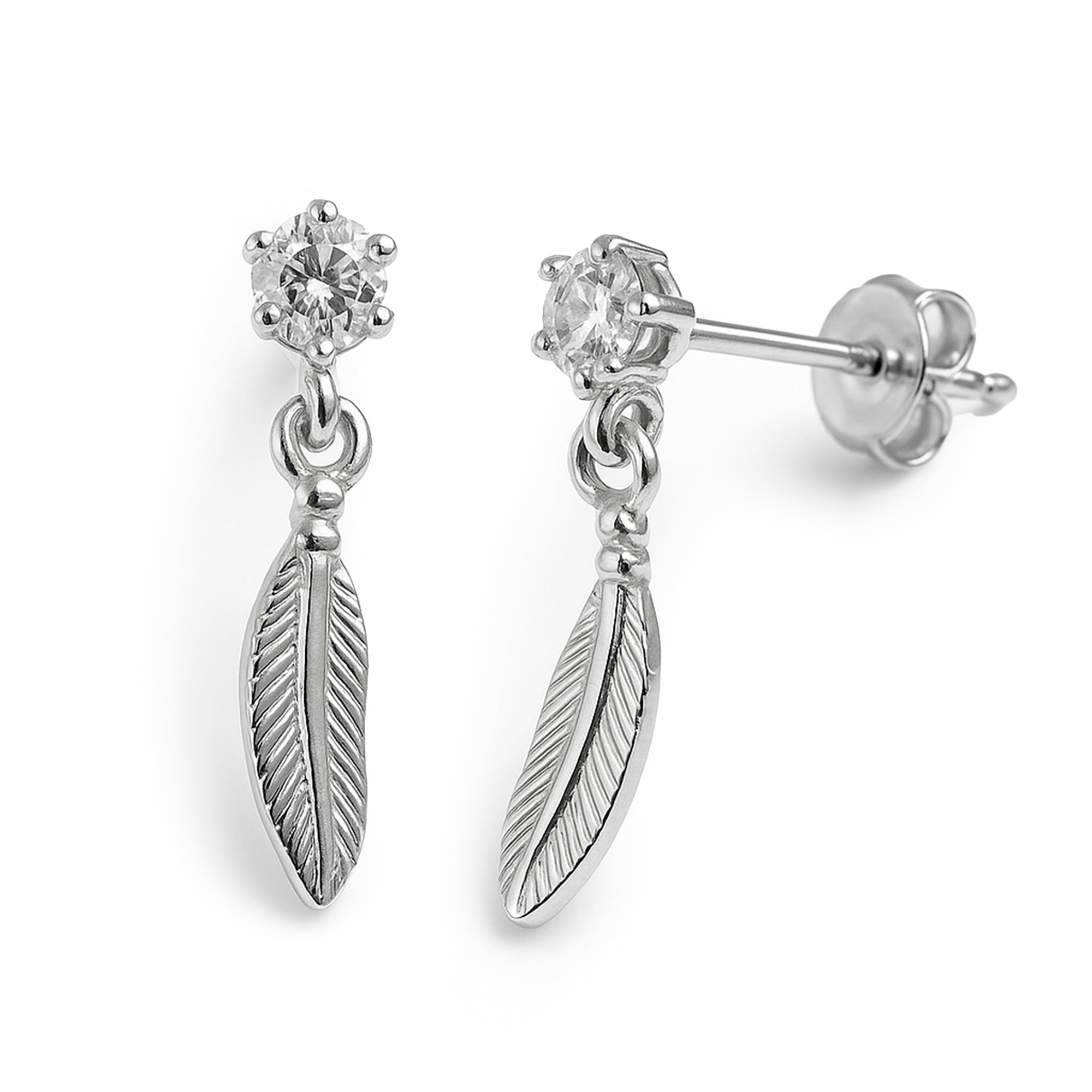 Broquel Pluma Colgante con Circonia Plata .925 (con bolita atrás)