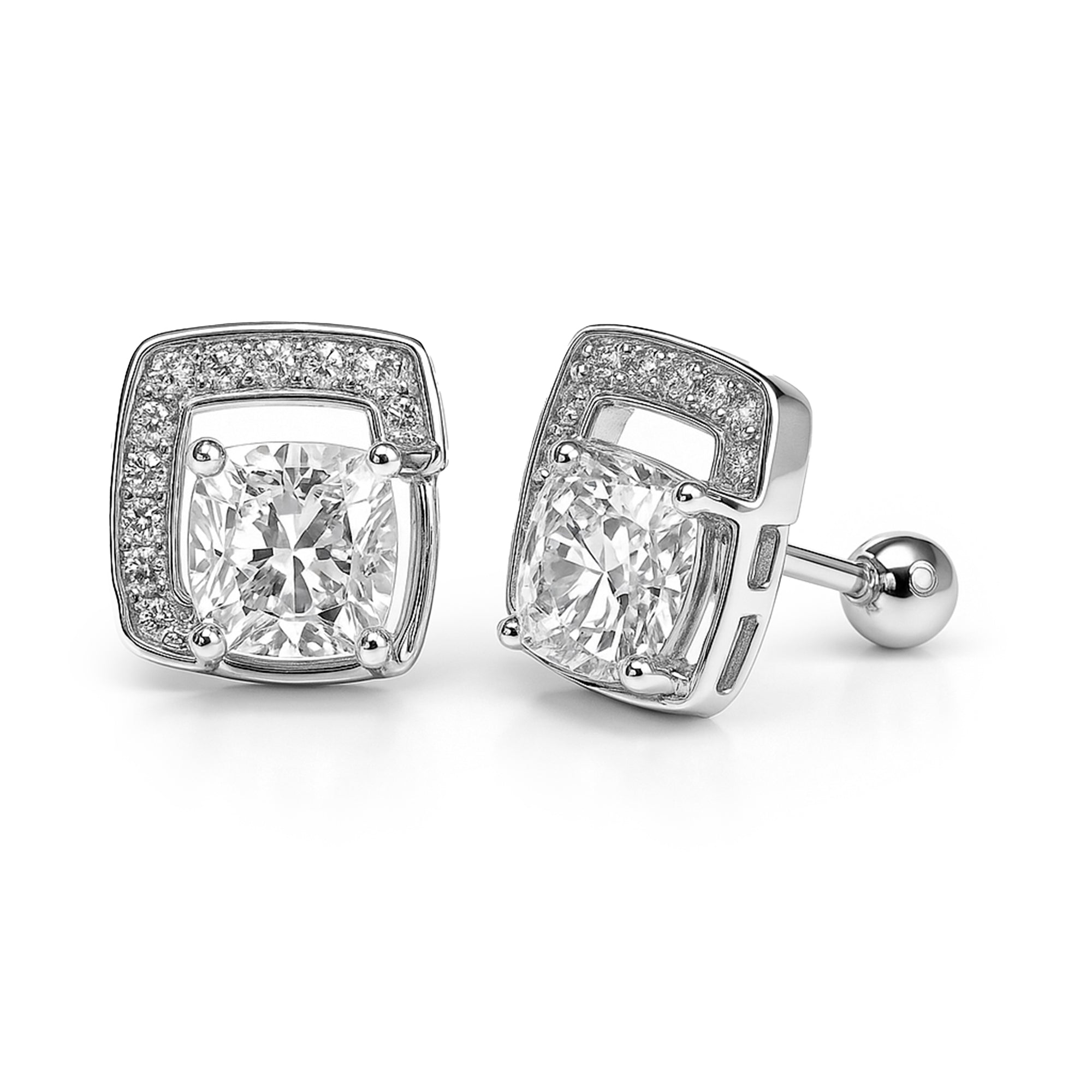 Broquel Grande Doble Cuadro con Micro Circonias Plata .925 con Rodio